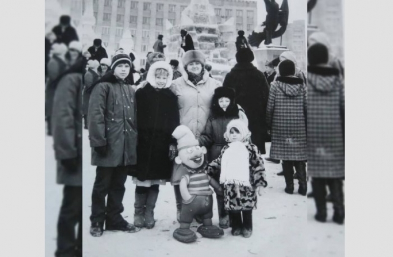 На фотографии 1990 год. Центральная площадь Уссурийска. Это был самый невероятный ледовый городок: огромные замки, церковь, скульптуры высотой в рост со взрослого человека. На моей памяти такого больше не было никогда. Я на фотографии самая маленькая рядом с гномиком. Кстати, раньше эти гномики были очень популярны, до сих пор у многих можно встретить фотографии с ним из разных районов города.