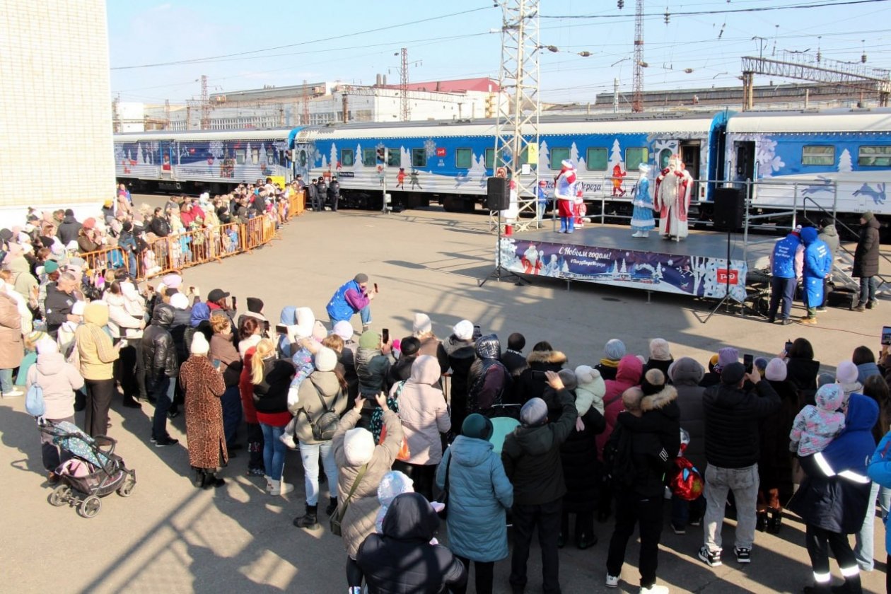 Здравствуй, Дедушка Мороз: поезд главного новогоднего волшебника побывал в Уссурийске "Красный нос" и его команда сделали 4-часовую остановку на вокзале