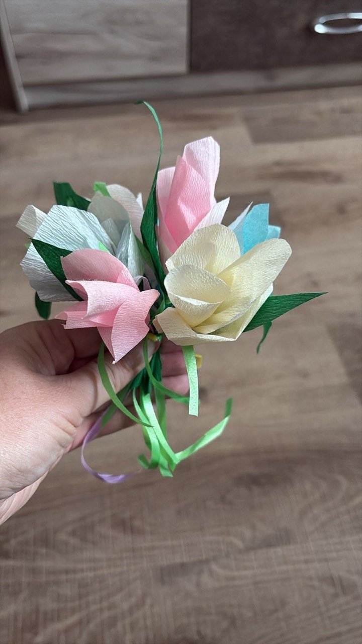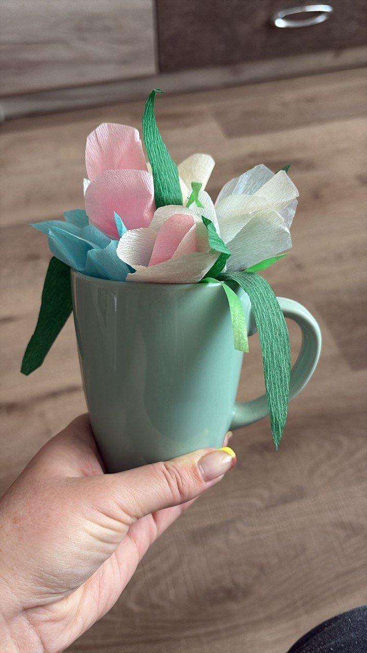 "В прошлом году Максиму (сыну) было 6 лет, он сделал на День матери милый букет из гофрированной бумаги, который радует до сих пор. Подарок был очень неожиданным и приятным. То, что сделано руками ребенка, сделано сердцем".