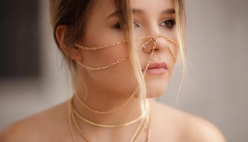 Цветовая гамма: чокеры из драгоценных камней лучше сочетать с простыми нарядами тёплых оттенков, чтобы не перегрузить образ.