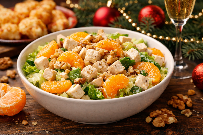Когда хочется чего-то свежего и небанального на Новый год, в дело вступает сочетание с фруктами. Салат с курицей и мандаринами именно такой вариант, он получается лёгким, ароматным и при этом сытным. Цитрусовая кислинка отлично подчеркивает нежное куриное мясо, а орехи добавляют текстуру и глубину вкуса.