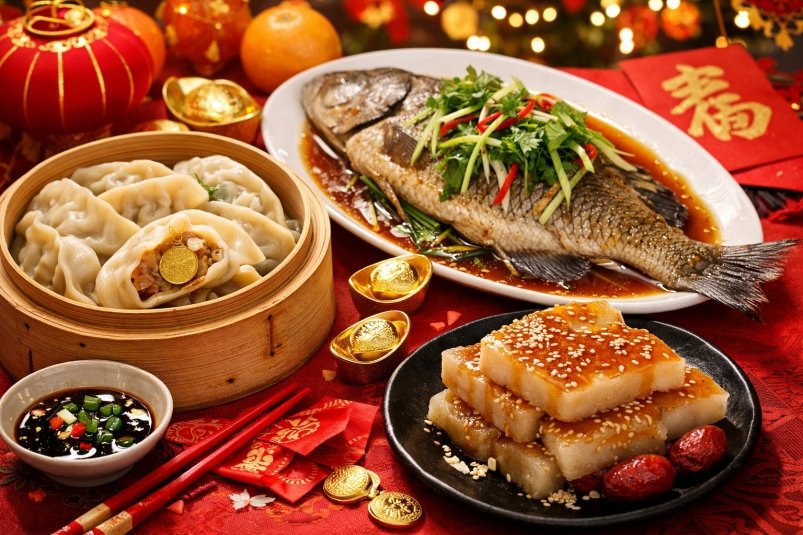 Китайский Новый год — редкий пример праздника, где еда заменяет пожелания. Здесь не говорят напрямую "будь богат" или "будь счастлив" — это зашифровывают в форме пельменя, звуке слова или кусочке оставленной рыбы.