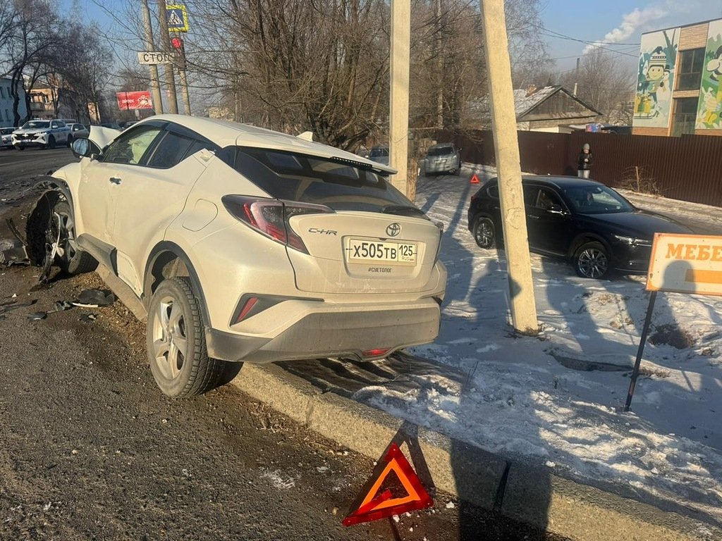По озвученной инспекцией информации, ДТП произошло в 07:40 утра в районе дома № 123а по Владивостокскому шоссе. 44-летняя водитель женщина, управляя автомобилем Toyota Mark Х, нарушила п.п. 6.2 ПДД (поехала на мигащий знак светофора), совершила столкновение с Toyota C-HR, за рулем которой находилась 42-летняя автомобилистка.