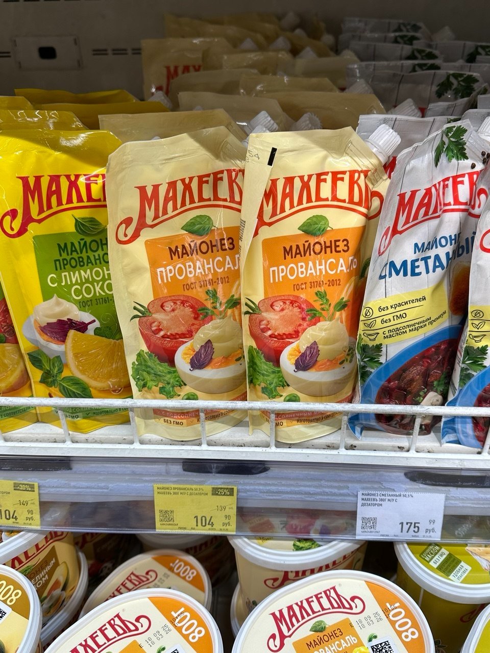 "Королем" стабильности в этой подборке стал майонез. Цена провансаля известной торговой марки во второй половине декабря держалась на уровне 104,9 рубля за 380 г. К концу наблюдений именно этот вид майонеза в заявленном объеме исчез с полок магазина. Однако продукт той же фирмы, но с добавлением лимонного сока, стоил аналогично.