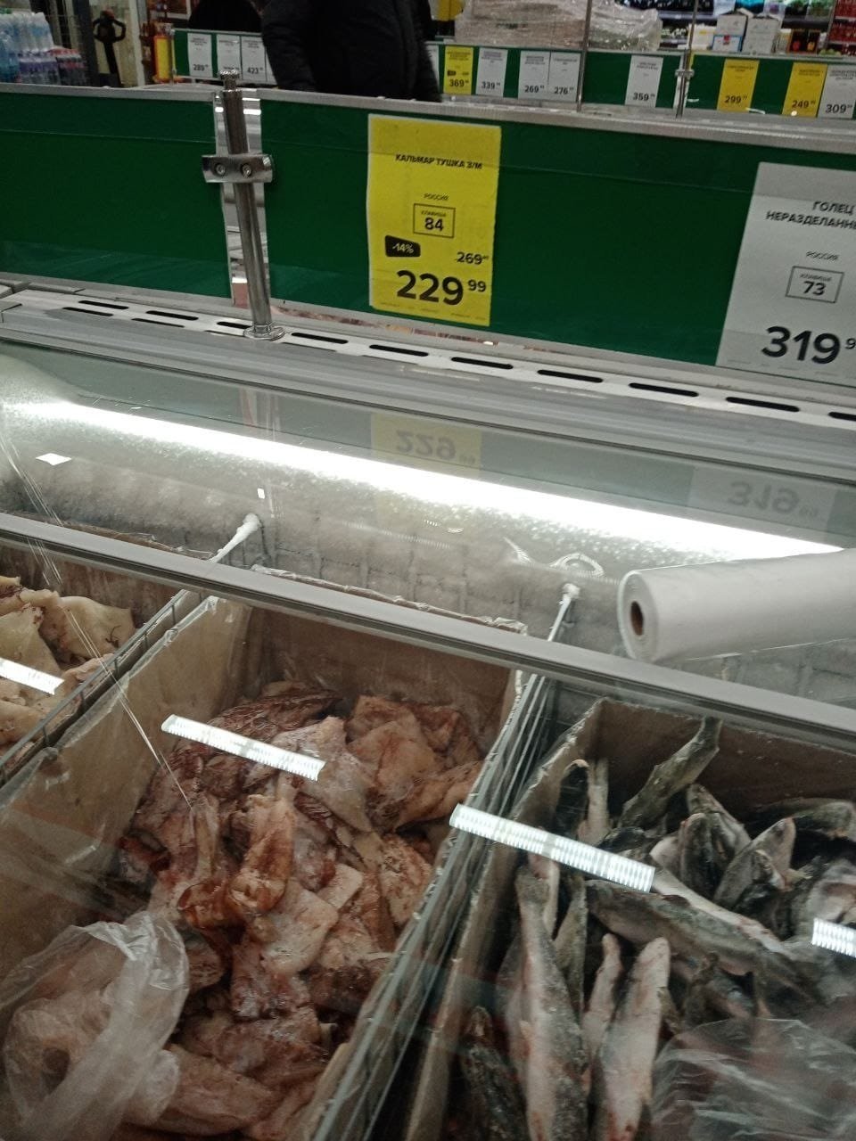 — тушка кальмара, 1 кг — 229,99 рубля;