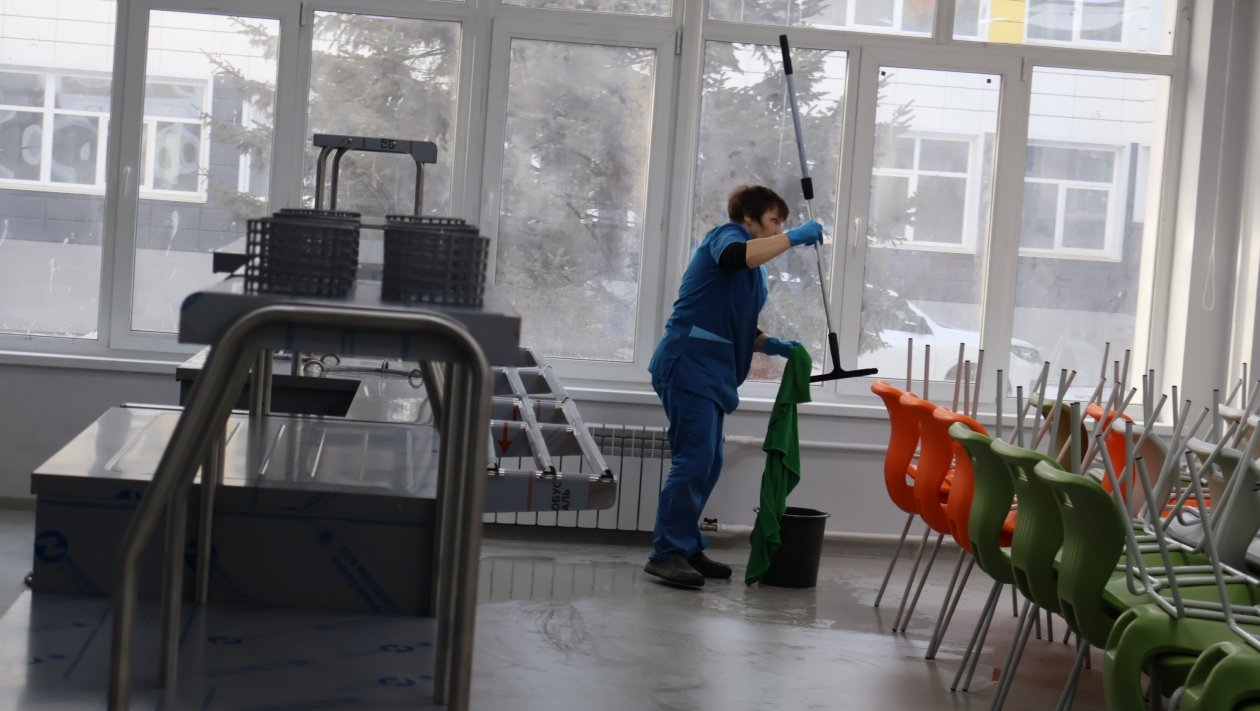 Первой точкой, откуда приходят позитивные новости, стала школа № 22. Здесь строительная эпопея фактически завершена. Подрядчики покинули объект, уступив место клининговой компании, которая отмывает классы и фойе от строительной пыли.