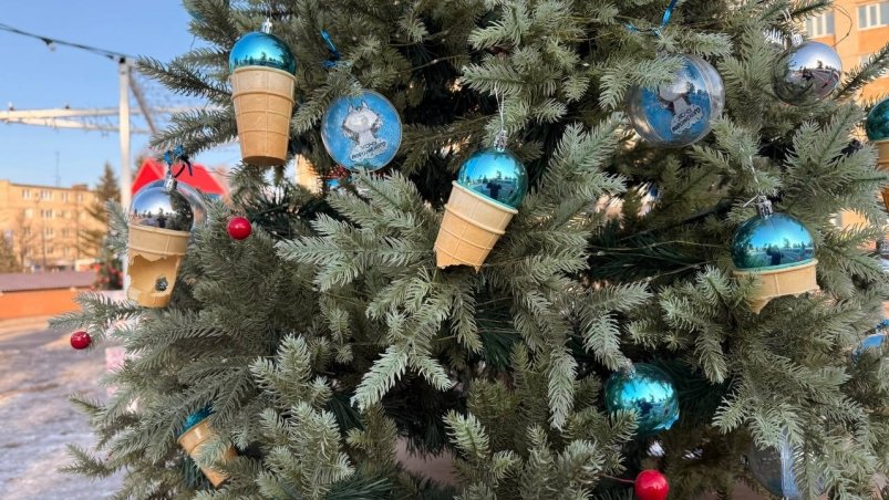 Галерея елок от местного бизнеса стала эксклюзивным украшением зимнего городка на центральной площади Уссурийска. Компания домашнего мороженого подошла к затее с характерной для своего производства выдумкой, декорировав свою пушистую красавицу игрушками в виде шариков мороженого в вафельных стаканчиках.