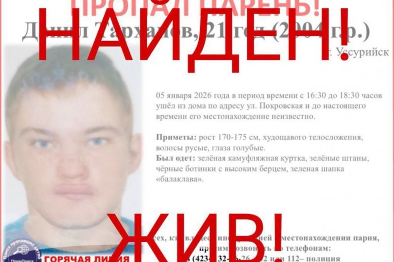 Во вторник, 13 января, "ПримПоиск" опубликовал ориентировку на пропавшего парня с подписью "Найден! Жив!"