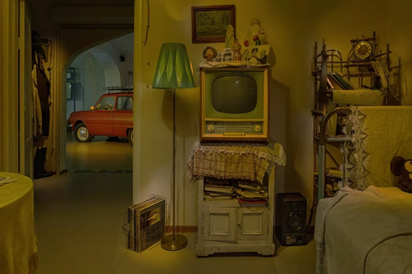 Одним из главных центров притяжения в интерьере был сервант или стенка. Это был не просто мебельный гарнитур, а статусный объект, витрина семейного благополучия. За стеклянными дверцами выстраивался строгий порядок: парадные сервизы, сувенирные рюмки из разных городов, набор хрустальных графинов "мальчик" и "девочка", книги в одинаковых переплётах. Эта инсталляция редко использовалась в быту, её предназначением была демонстрация. Стенка олицетворяла стабильность, обретённый достаток и некую "культурность" жильцов, становясь архитектурной доминантой небольшой гостиной.