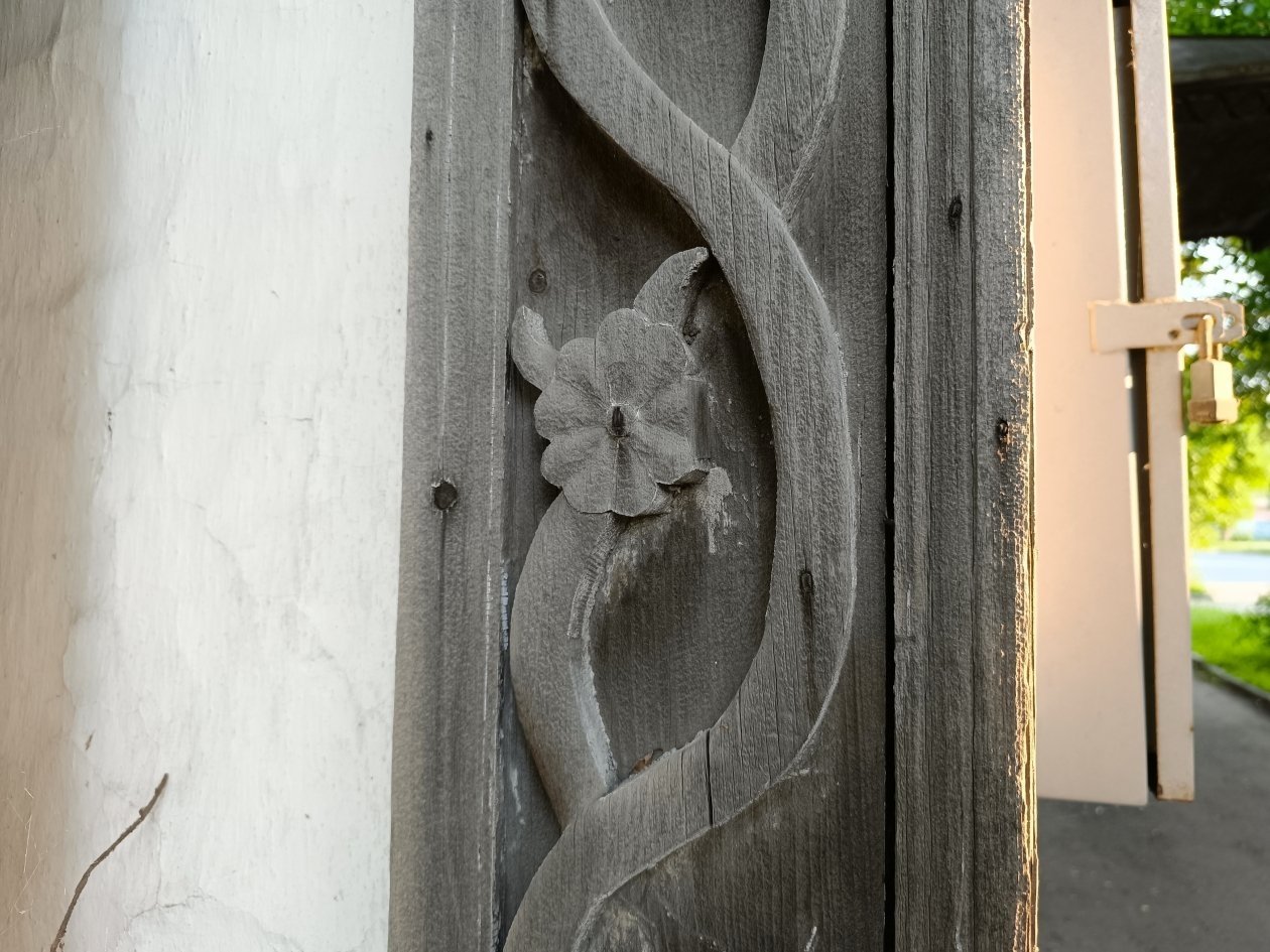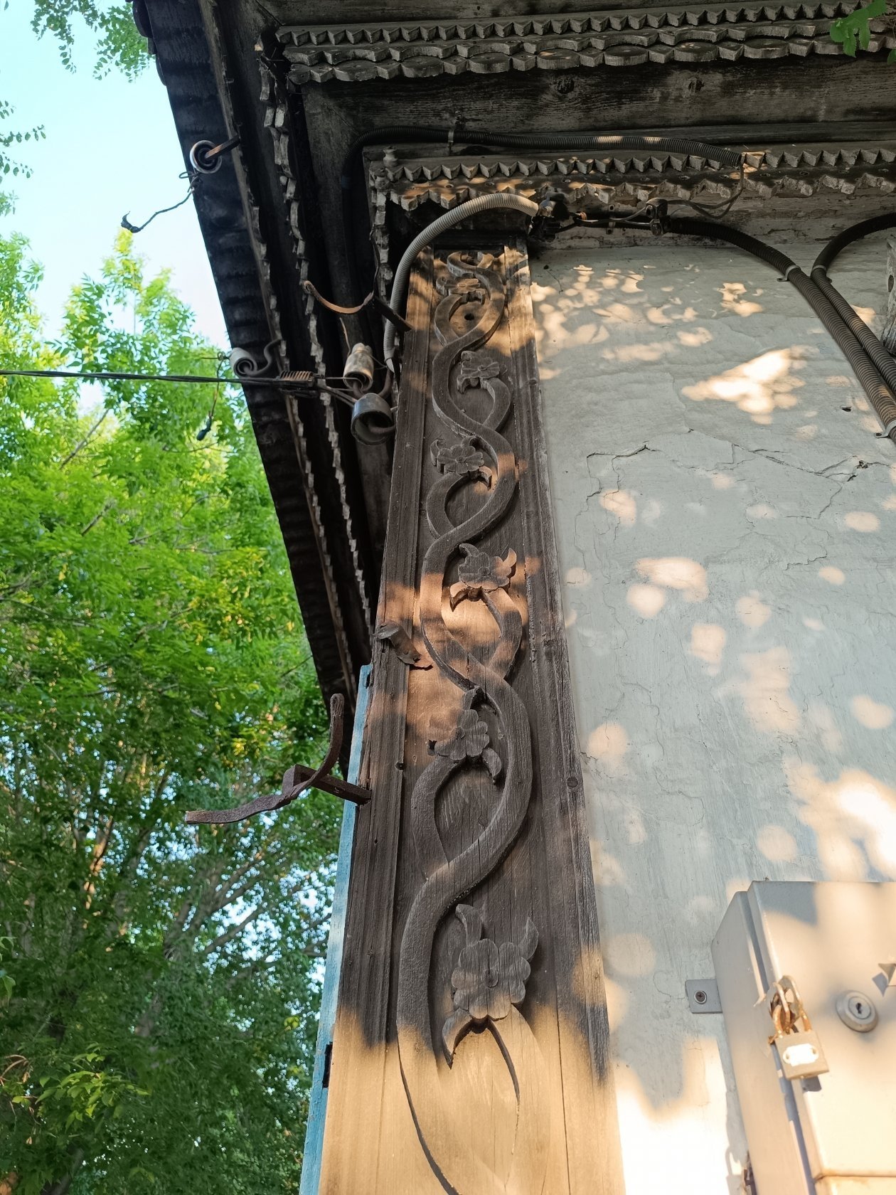 Обзор терема под снос завершает впечатляющей красоты торцовая доска, украшенная искусным орнаментом в виде стеблей и цветов.