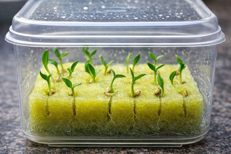 Главный плюс губки — её структура. Поролон отлично удерживает влагу, но при этом остаётся воздухопроницаемым. Семена не пересыхают и не "задыхаются", как это иногда бывает в ватных дисках или переувлажнённой почве.