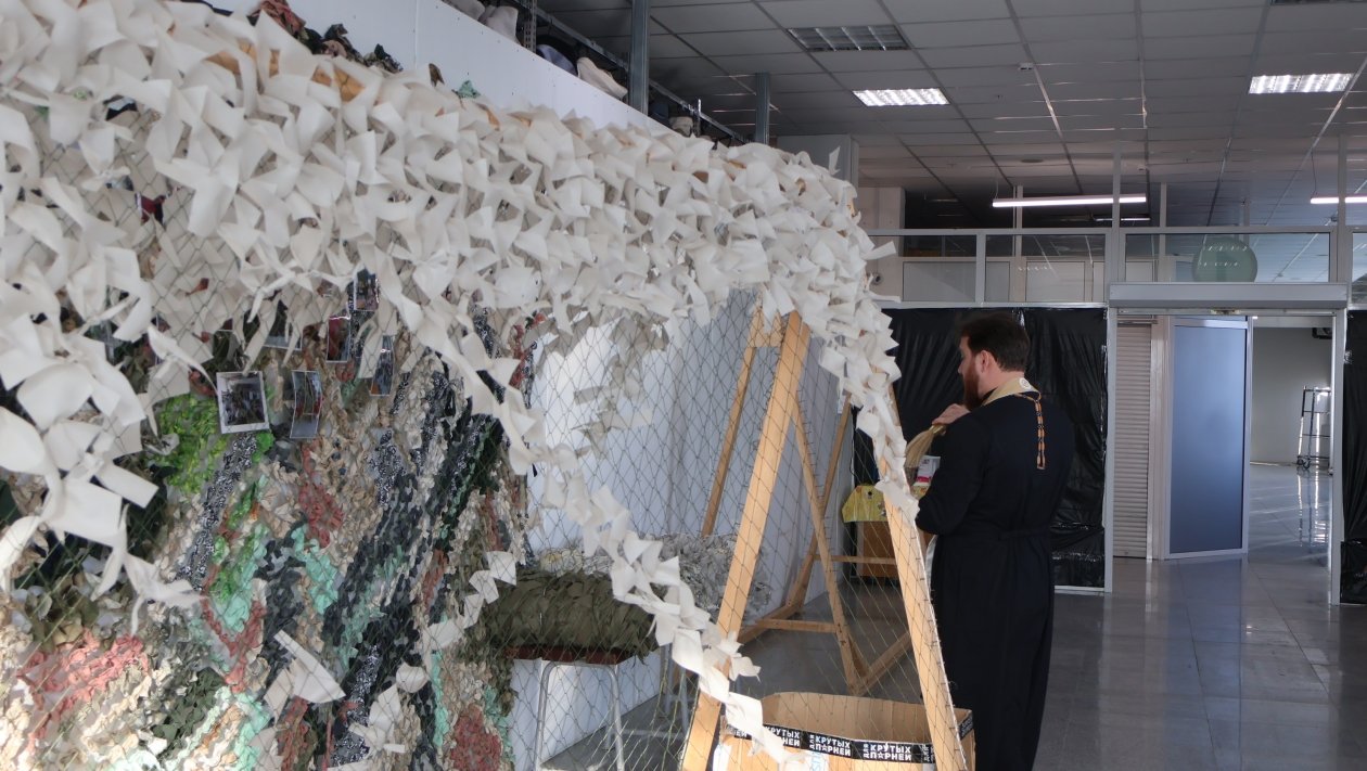 "Есть бойцы, которые, когда не на зоне боевого соприкосновения, звонят людям, занимающимся плетением сетей, и говорят: там трава уже с листвой пожухли, нужно цвет сменить, — рассказывает священник. — Раз, основу закупили для сеток в цвет жухлой травы и жухлых листьев — вот полетят туда сети".