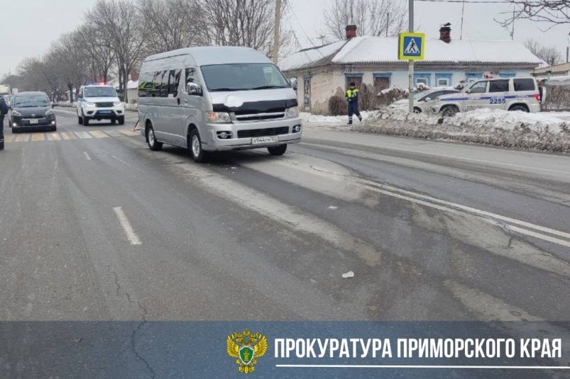 "Установлено, что 18 января 2026 года в дежурную часть ОМВД России по г. Уссурийску поступило сообщение о наезде на ребёнка 2013 года рождения на пешеходном переходе. Автомобиль Toyota Hiace совершил наезд в районе дома № 40 по улице Краснознамённой", — говорится в сообщении.