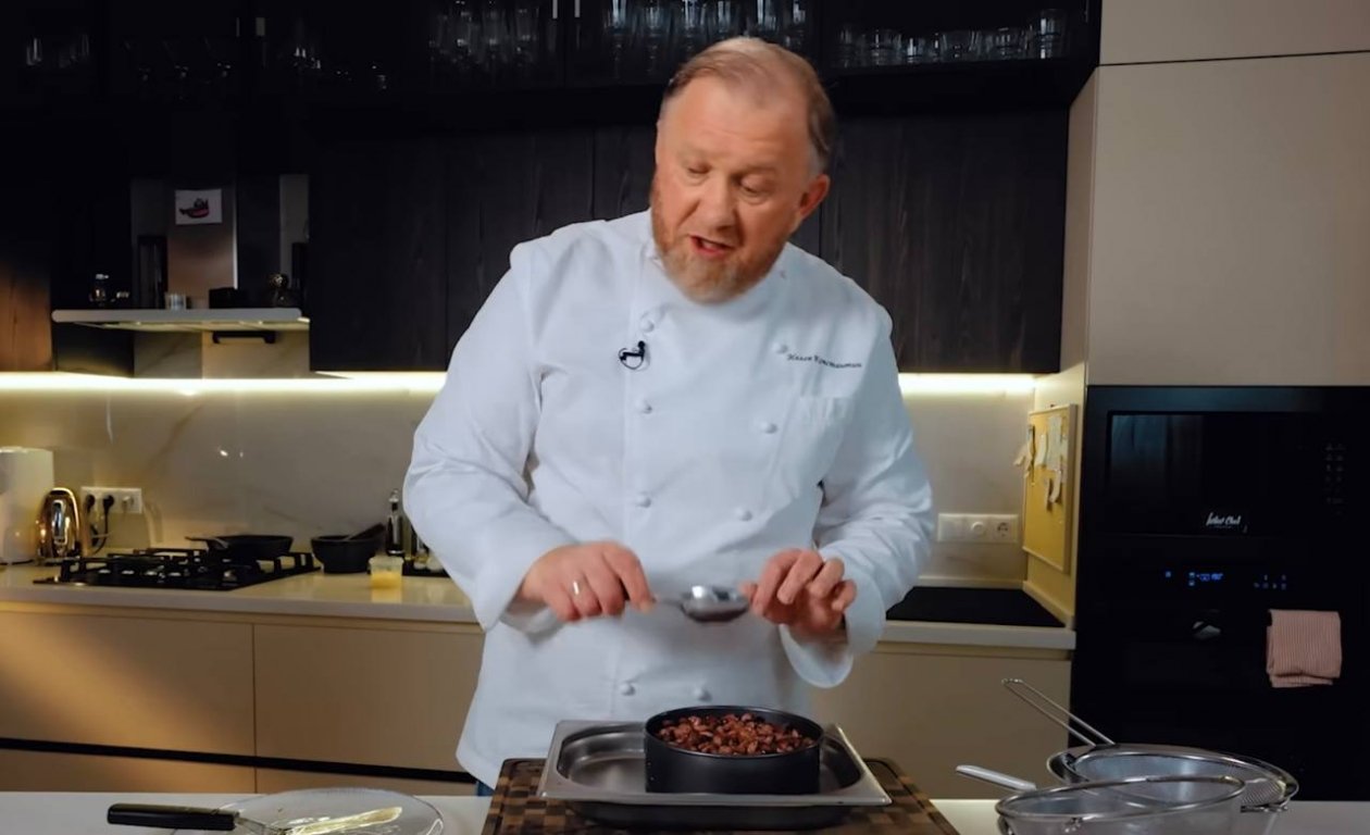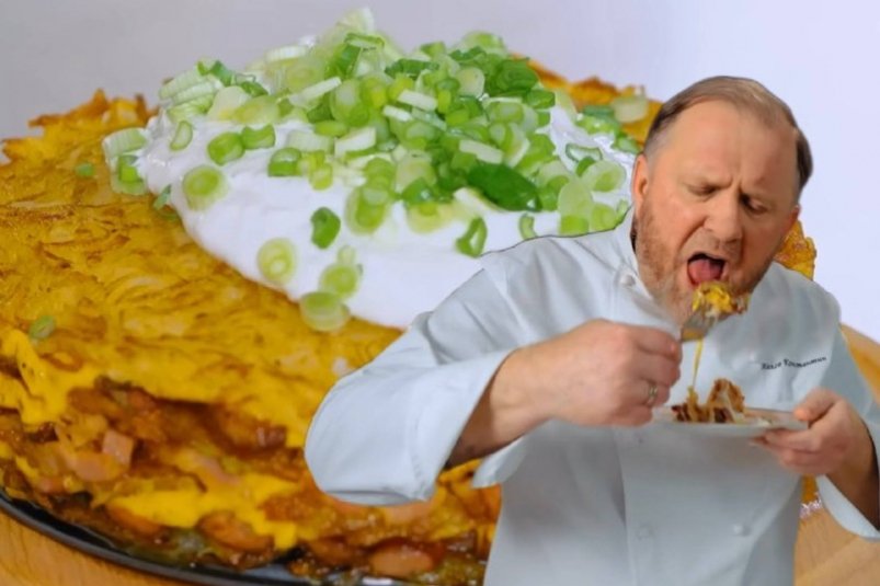 Шеф Константин Ивлев, если и готовит, то основательно; если прорабатывает идею, то глобально. Зачем на тарелку класть несколько драников, если можно сразу целый торт? Интересная идея посетила голову знаменитости, а вот возьми да и приготовь. Так еще не пожадничал, а со зрителями поделился.
