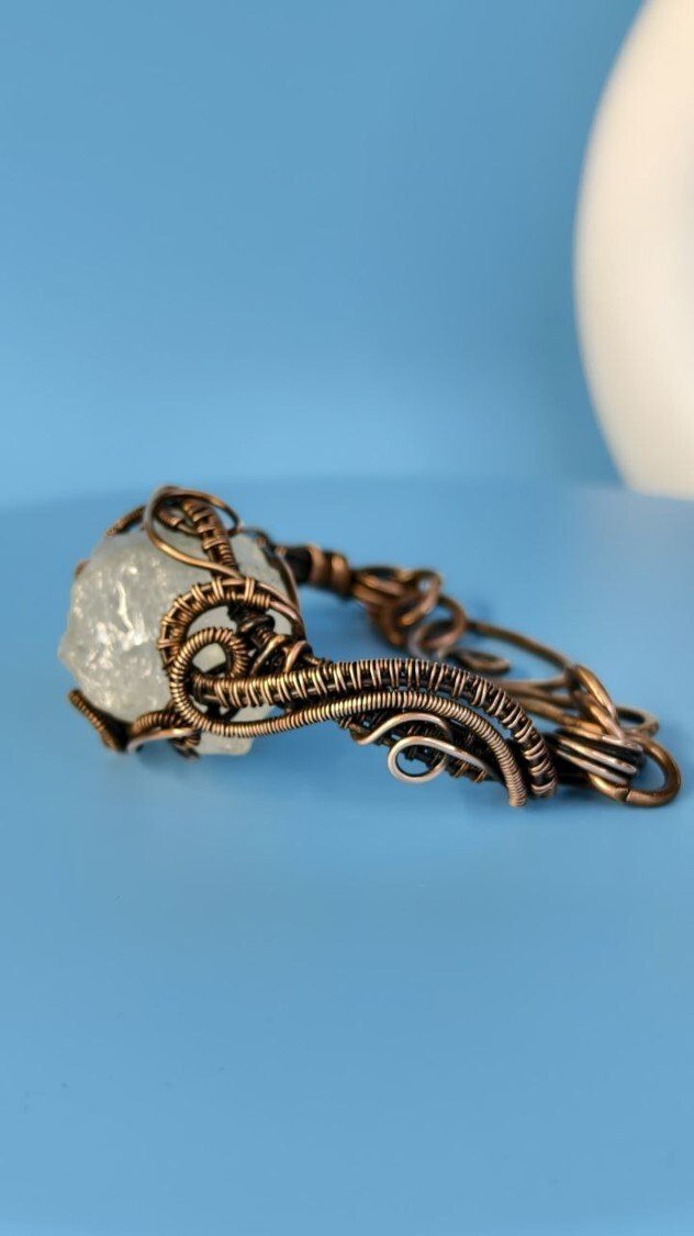 Сердце коллекции Любови Высоцкой — уникальная техника создания ювелирных изделий из медной проволоки и натуральных камней. В отличие от традиционной "ювелирки", здесь нет пайки, нет сложного оборудования. Только руки, медная проволока, натуральные камни — аметист, кварц, яшма — и огромное мастерство.