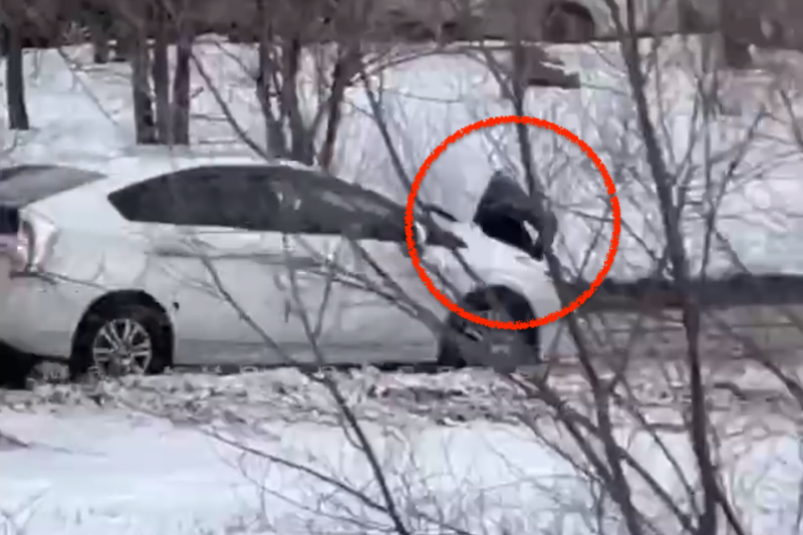 Жители города Уссурийск в Приморье поделились в соцсетях видео с необычным способом автодиагностики. На кадрах Toyota Prius едет по дороге с поднятой крышкой капота, а под ней сидит мужчина.