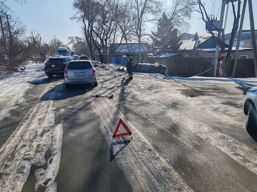 UssurMedia, 23 января. 20 января в 12:15 в Уссурийске на улице Тургенева, 73, водитель Toyota Corolla Fielder (1975 г.р.) нарушил пункт 13.12 ПДД: при повороте налево не уступил дорогу встречной Honda CR-V, ехавшей прямо. От удара Honda съехала в кювет и перевернулась.