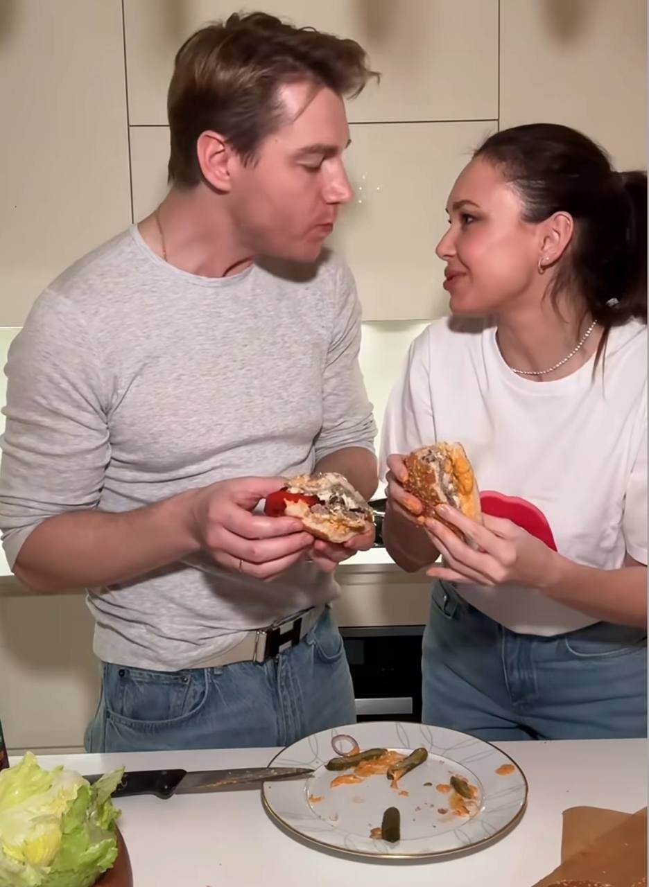 Недавно поженившиеся Алексей Воробьев и Аида Гарифуллина любят готовить вместе. Они поделились своим видением одного популярного блюда. Помимо привычной готовки здесь были запечены, поцелуи и нежные объятия.