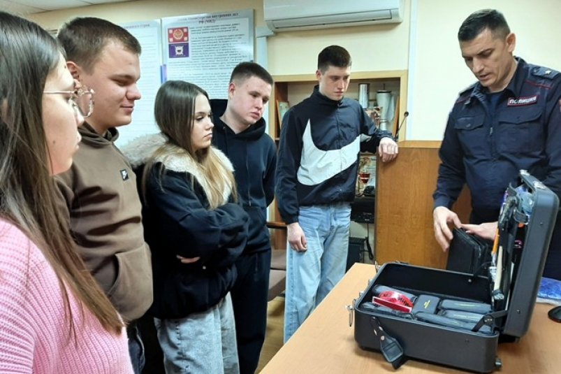 "Начальник экспертно-криминалистического отдела, майор полиции Евгений Боловцов, рассказал о роли экспертов-криминалистов в раскрытии преступлений. Он продемонстрировал студентам специализированный криминалистический чемодан, содержащий более 80 предметов, используемых для сбора улик и установления обстоятельств совершения преступлений", — говорится в сообщении.