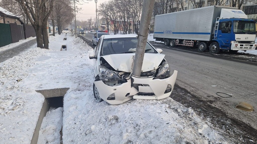 По данным ведомства, ДТП произошло в 05.50 утра 26 января. Машина двигалась со стороны улицы Комарова в сторону Комсомольской. Водитель не снизил скорость и не справился с управлением. В результате Toyota съехала с проезжей части и врезалась в столб уличного освещения.