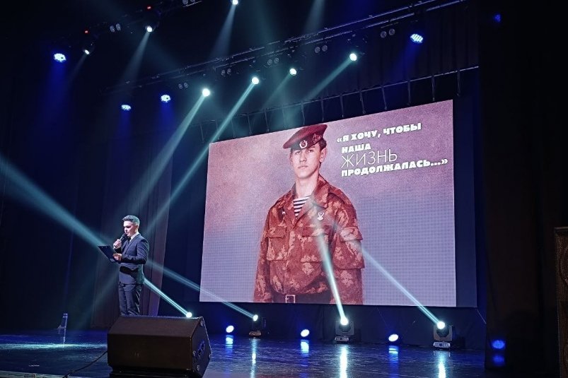 Самыми трогательными моментами вечера стали кадры видеохроники (0+) с воспоминаниями мамы Героя, Ларисы Семеновны. С экрана на зал смотрел тот самый Сережа — мальчик, который обожал лыжи, велосипед и прогулки по набережной. Оказывается, будущий офицер рождался в детских играх.