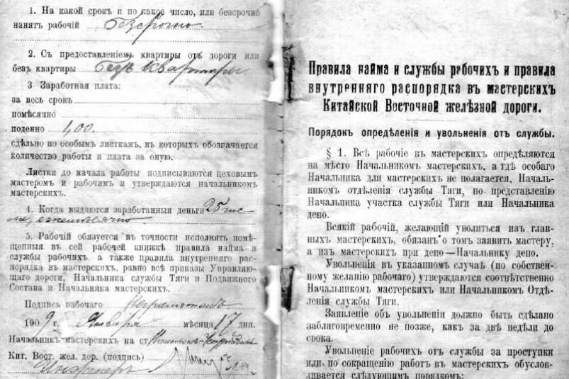 UssurMedia, 3 февраля. В архиве Уссурийского локомотиворемонтного завода обнаружили рабочую книжку чернорабочего Антона Гарника, датированную 1909 годом. Ее нашел хранитель народного музея УЛРЗ Сергей Меринов во время ревизии фондов, сообщает пресс-служба завода.