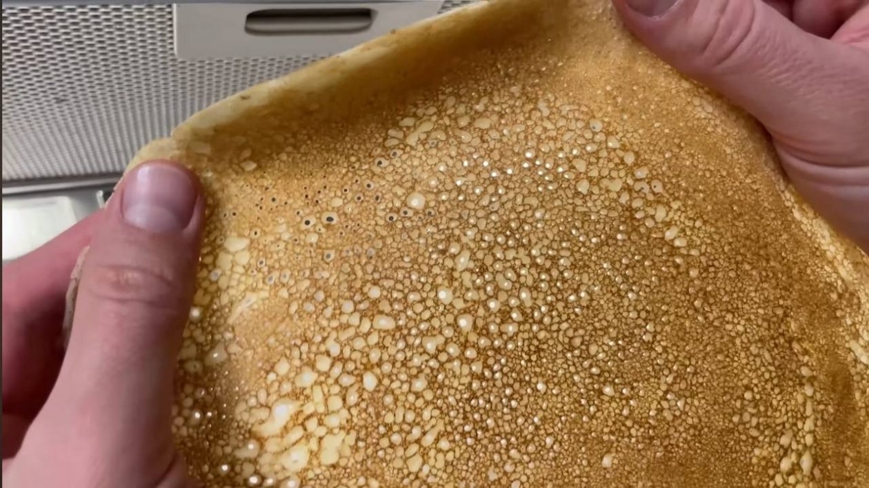 "Тесто для блинов не должно получаться очень густое. Оно должно быть жидким. В этом фишка", — советует кулинарный мастер.