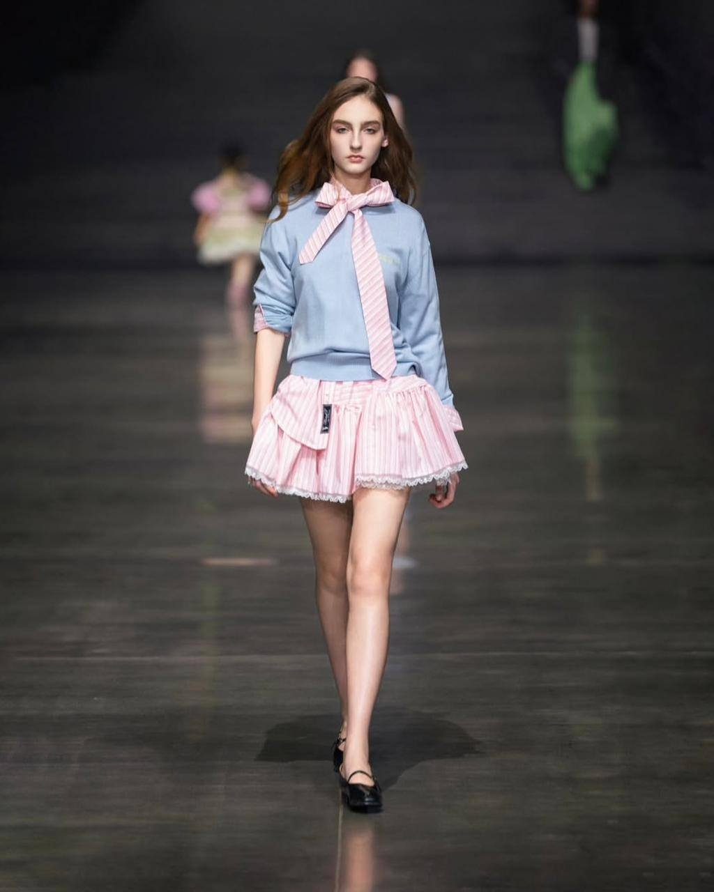 Вероника Абрамова — модель со стажем и опытом, отработала несколько контрактов в Азии. А Маше Попелыш всего 13 лет. Первый ее выход на большой подиум был год назад на Московской неделе моды, когда юной модели исполнилось всего 12 лет. В Китае вторая ее неделя моды.