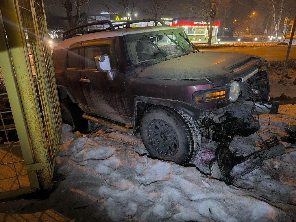В Уссурийске на улице Агеева нашли поврежденный внедорожник Toyota FJ Cruiser и поваленное дерево. Водителя на месте не оказалось — он скрылся после ДТП.