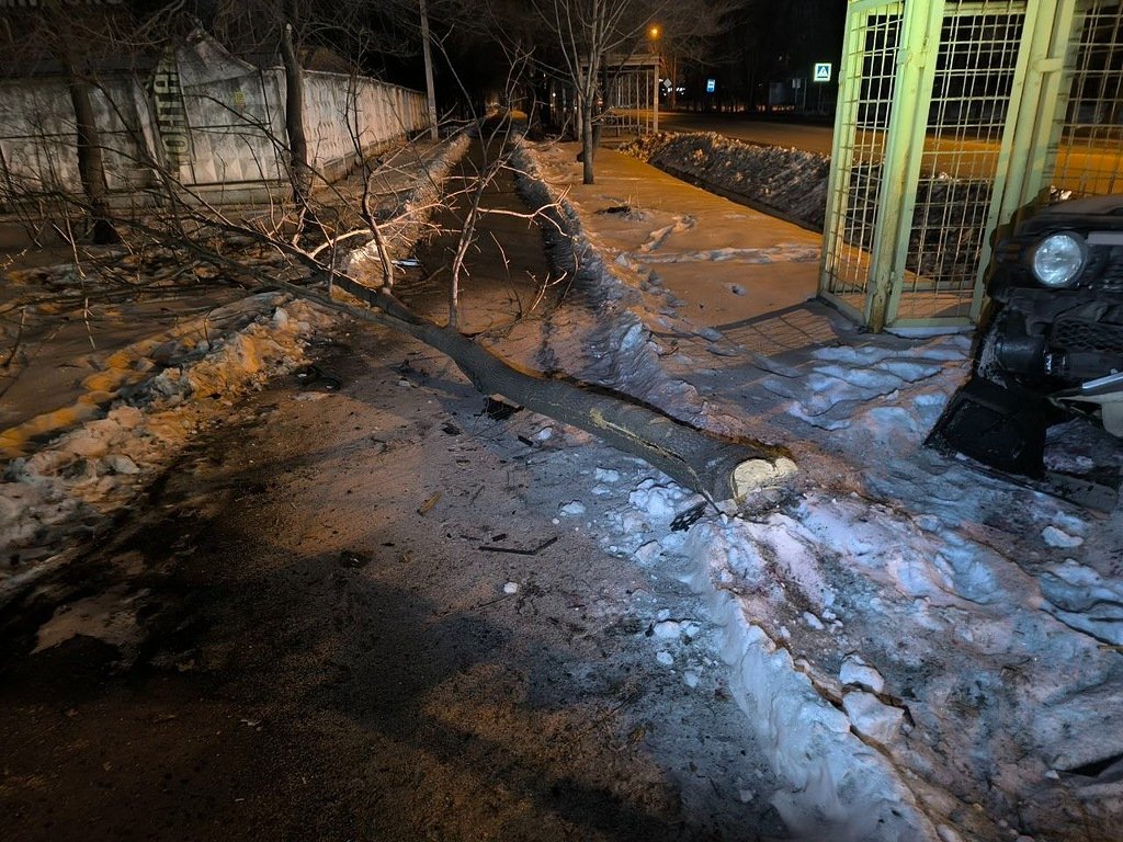 UssurMedia, 4 февраля. Дерево лежит, разбитый внедорожник стоит, людей нет. Такую картину застали сотрудники Госавтоинспекции Уссурийска на улице Агеева.