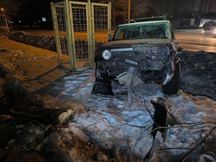 По данным Госавтоинспекции, авария произошла 30 января в 23.19 у дома № 9. "Неустановленный водитель, управлял внедорожником Toyota FJ Cruiser, при неустановленных обстоятельствах совершил съезд с дороги, и наезд на дерево, повредив его, после чего скрылся с места ДТП", — сообщили в ведомстве.