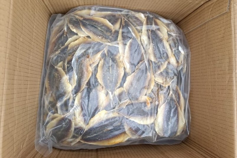 Партия желтого сушеного полосатика из Вьетнама весом 25,2 т подверглась досмотру специалистов Россельхознадзора на складе временного хранения во Владивостоке. Отобранные пробы исследовали в лаборатории Приморского филиала подведомственного Россельхознадзору ФГБУ "АПК НАЦРЫБА".