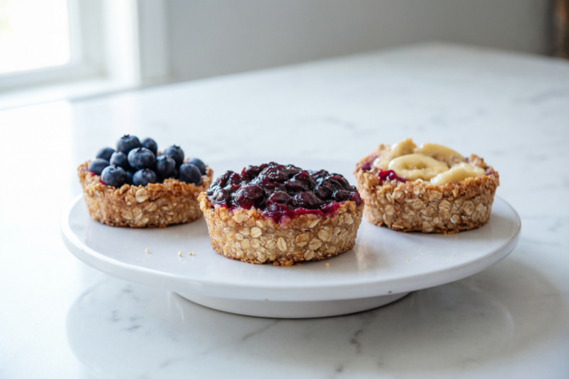 - Наполните порционные формы на 2/3, добавьте начинку: чернику, яблоко, малину или другие фрукты.