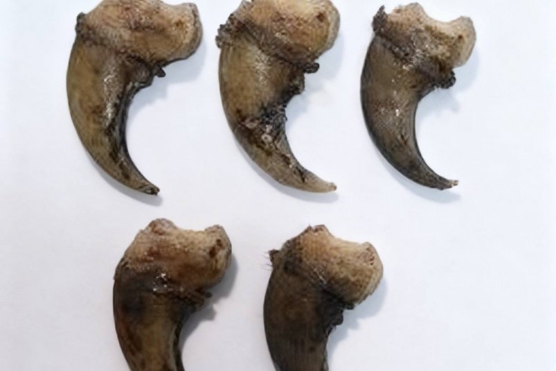 Во время проведения таможенного контроля багажа туристов убывающих в Китай через автомобильный пункт пропуска Краскино, инспектор обратил внимание на одежду одного из них. В кармане куртки 28-летний гражданин перемещал товары, которые таможенник также попросил предъявить к осмотру. Сообщив сотруднику таможни об отсутствии запрещенных и ограниченных к перемещению через границу товаров, мужчина достал из кармана полиэтиленовый пакет, в котором оказались 5 когтей медведя.