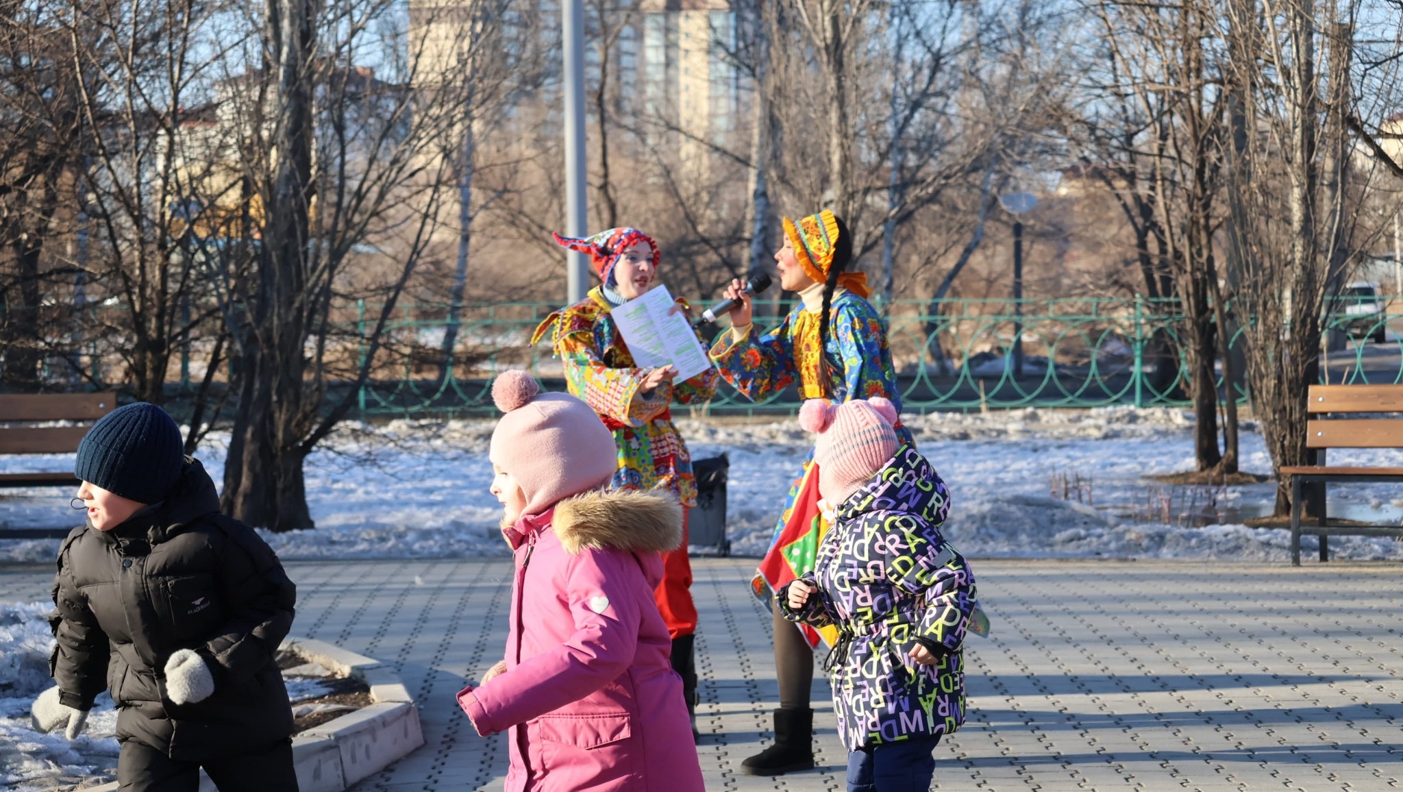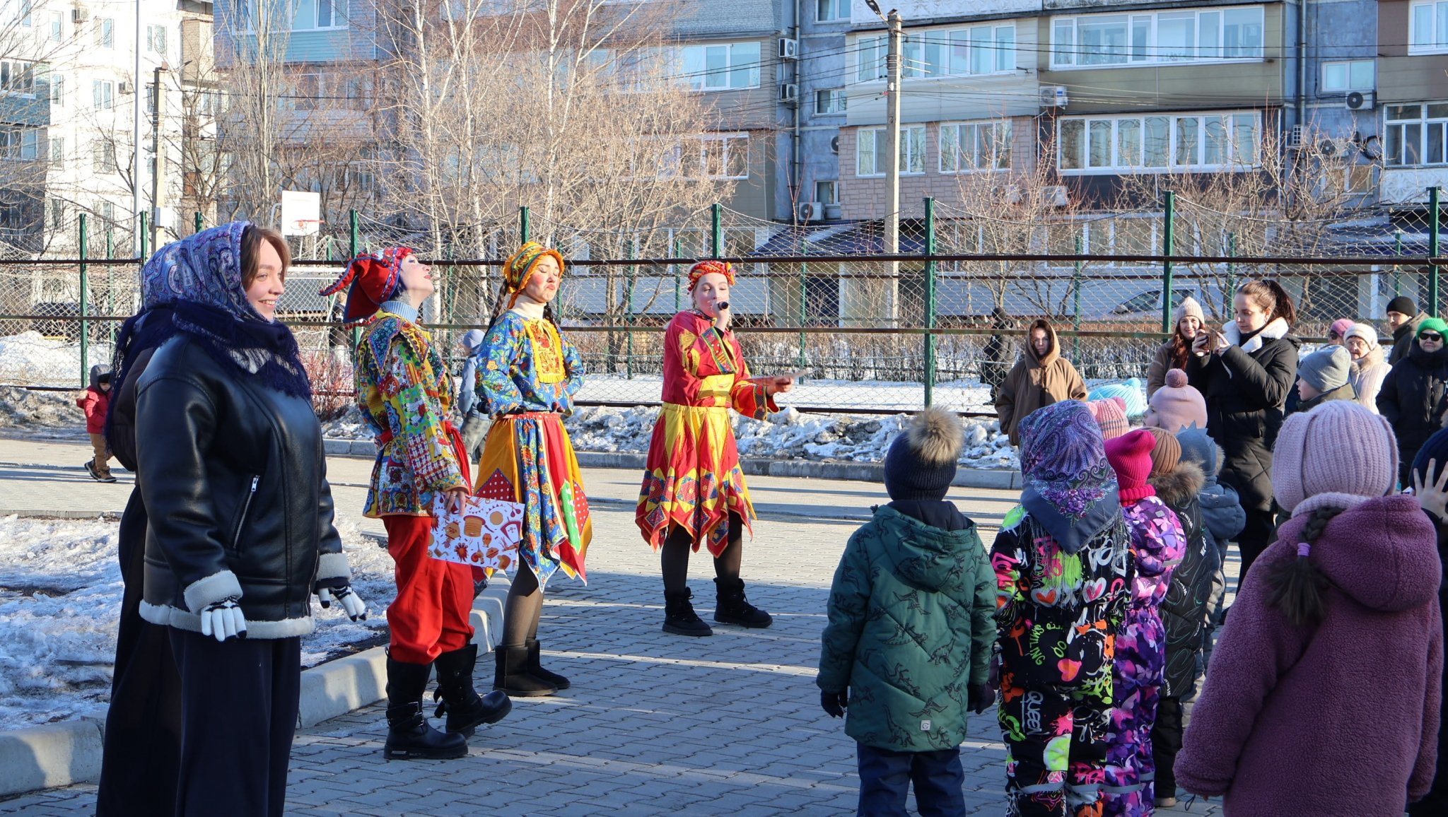 Уссурийск начал масленичную неделю с бодростью и задором. Старт "блинной эпопее" дали в сквере имени Кузьменчука микрорайона Междуречье: развлекательную программу (0+) в духе русских народных гуляний здесь устроили коллективы Центра народного творчества и Детской школы искусств. Веселые скоморохи и красны девицы не давали детворе и взрослым заскучать, а подвижные игры с блинами (пусть и бутафорскими) и хороводы — замерзнуть. Первый день Масленицы запечатлел фотокор ИА UssurMedia.