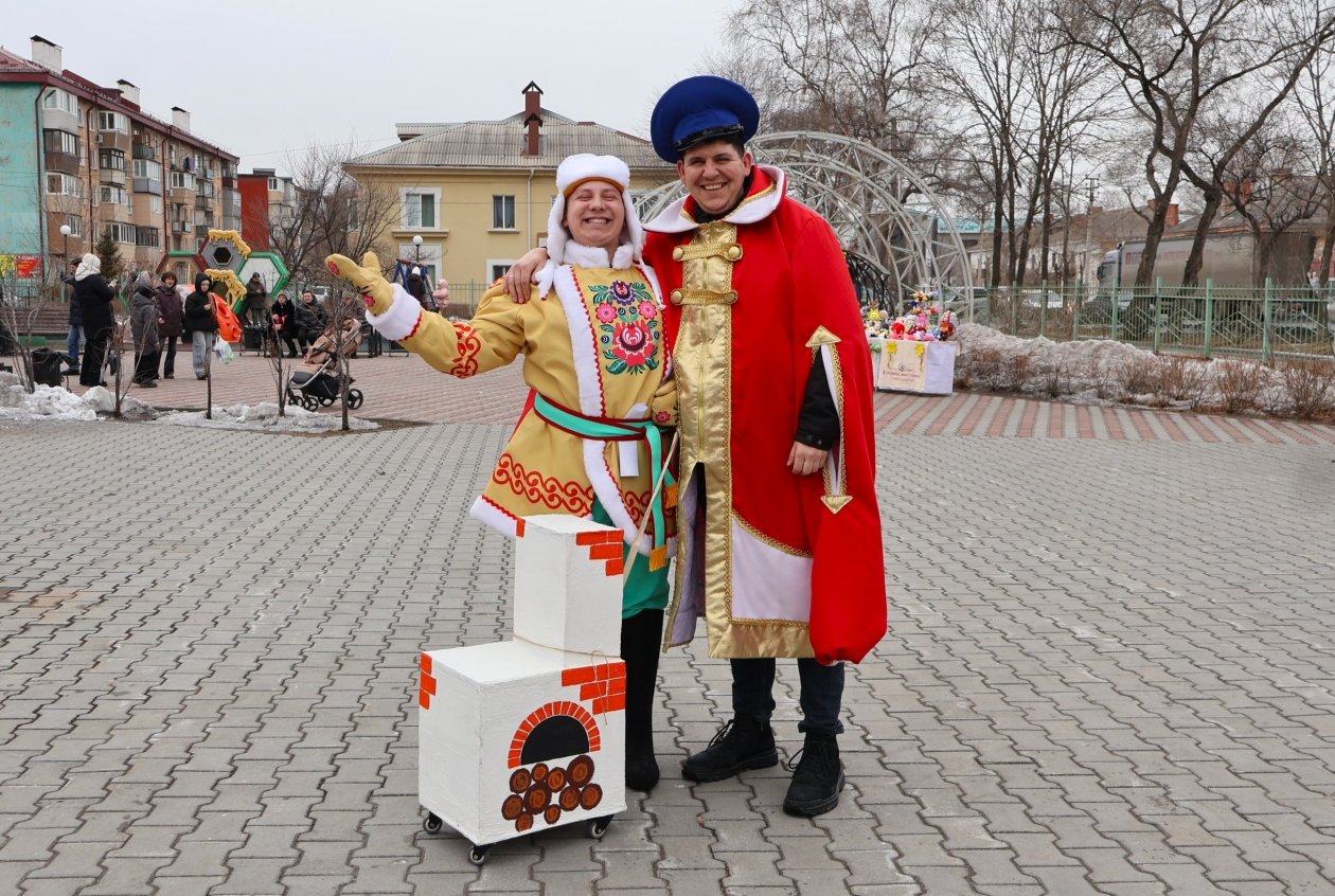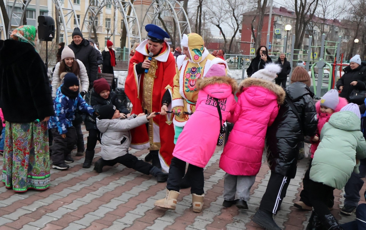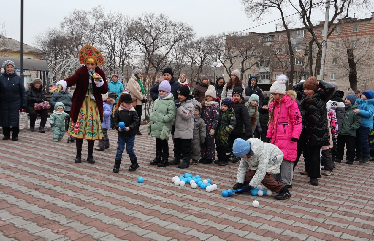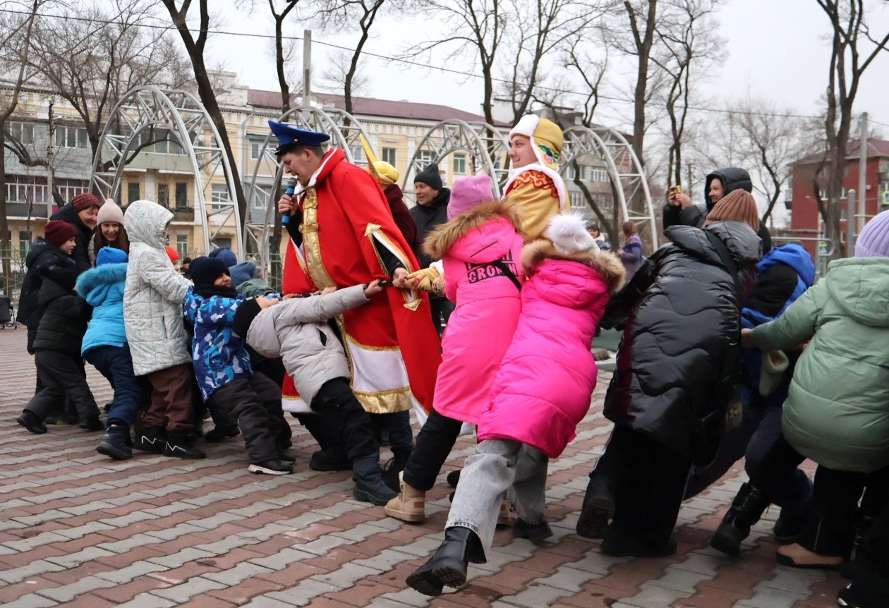 Широкая Масленица с задором шагает по Уссурийску, и на второй день гуляний под названием "Заигрыши" (0+) дети и взрослые заигрывали с зимой. В сквере на улице Ленинградская забавлялись игрой в снежки, придумывали инновационные рецепты блинов и перетягивали канат. Во всевозможные затеи гостей праздника втягивали две Василисы — Прекрасная и Премудрая, Емеля со своей чудо-печкой и Вовка из Тридевятого царства — тот самый мультипликационный мальчик, запомнившийся фразой "и так сойдет". Веселые затеи поймал в объектив фотокорр. ИА UssurMedia.