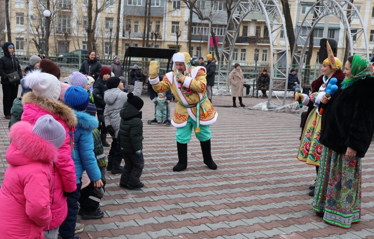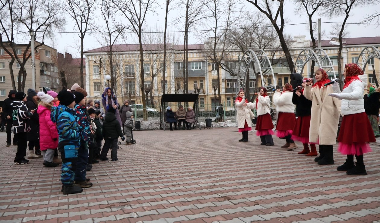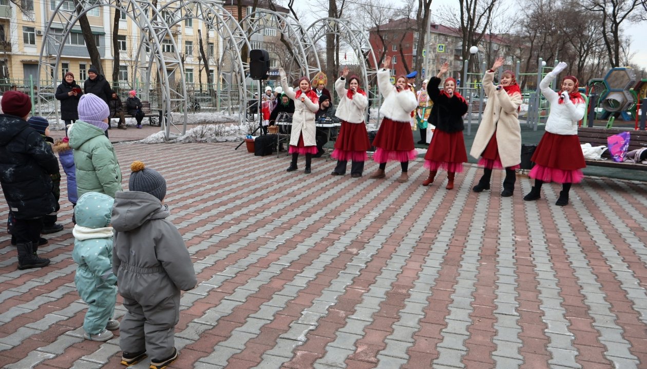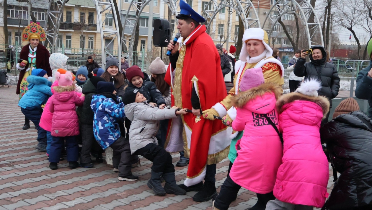 Широкая Масленица с задором шагает по Уссурийску, и на второй день гуляний под названием "Заигрыши" (0+) дети и взрослые заигрывали с зимой. В сквере на улице Ленинградская забавлялись игрой в снежки, придумывали инновационные рецепты блинов и перетягивали канат. Во всевозможные затеи гостей праздника втягивали две Василисы — Прекрасная и Премудрая, Емеля со своей чудо-печкой и Вовка из Тридевятого царства — тот самый мультипликационный мальчик, запомнившийся фразой "и так сойдет". Веселые затеи поймал в объектив фотокорр. ИА UssurMedia.