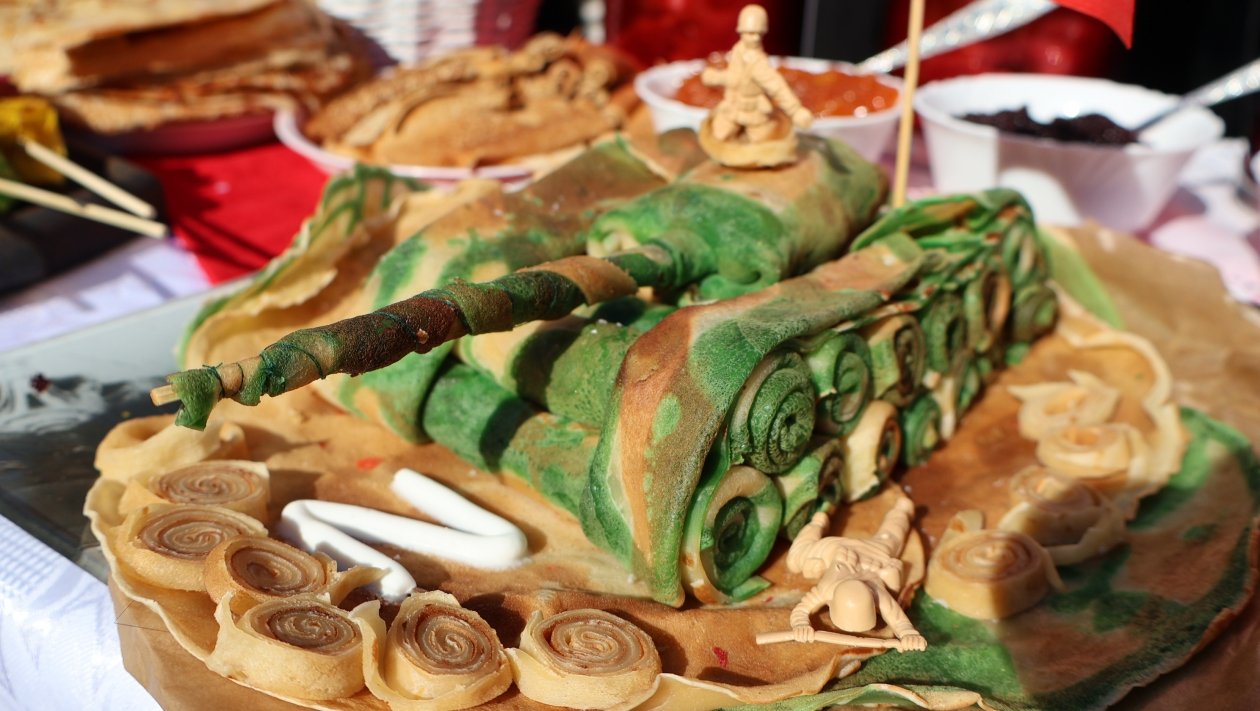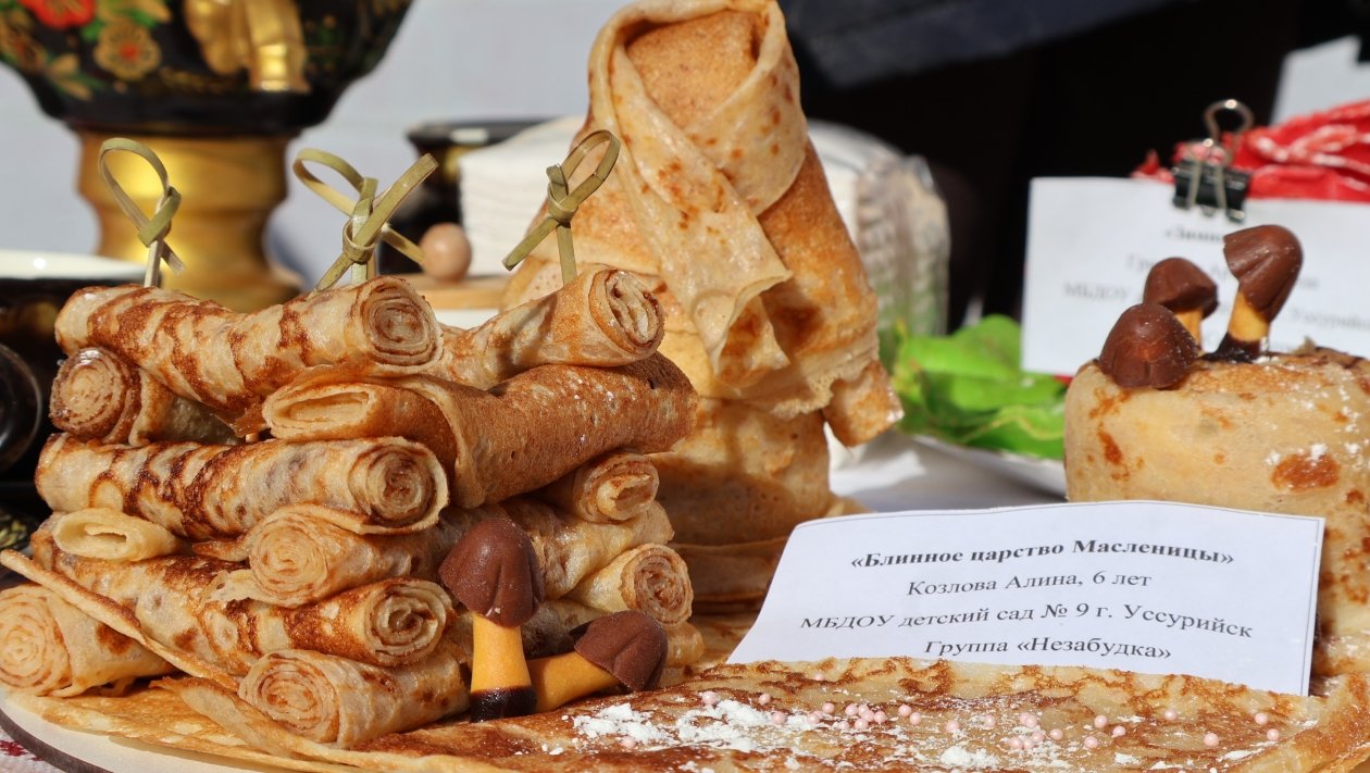 Во дворе Центра детского творчества Уссурийска в среду развернулась блинная ярмарка (0+): коллективы детских садов и школ накрыли десятки столов с домашней выпечкой. Главное угощение — блины во всех видах: целые горы, "цветы", "колодцы" и даже танк из блинов, которые педагоги готовили вместе с родителями воспитанников. Полюбовался на шедевры русской народной кулинарии и пообщался с участниками корр. ИА UssurMedia.