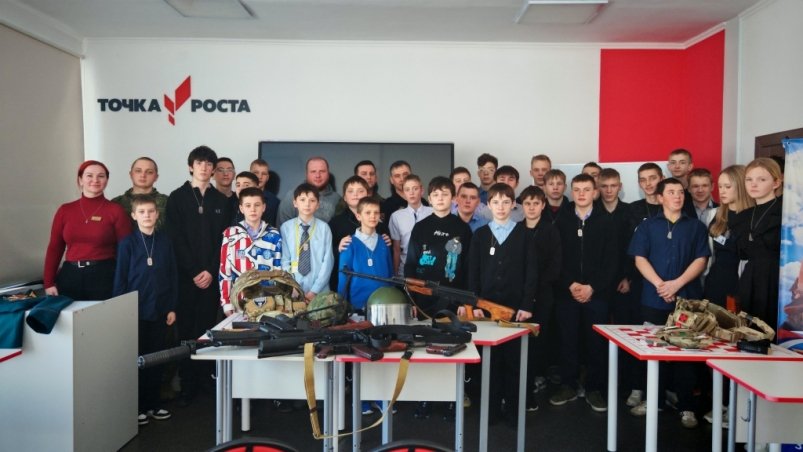 Затем ребятам рассказали о государственных и ведомственных наградах за участие в боевых действиях. Алексей Юрьевич поделился личной историей: он был обычным сельским учителем, но пошел служить по контракту, вдохновившись подвигом родственников — участников Великой Отечественной войны.