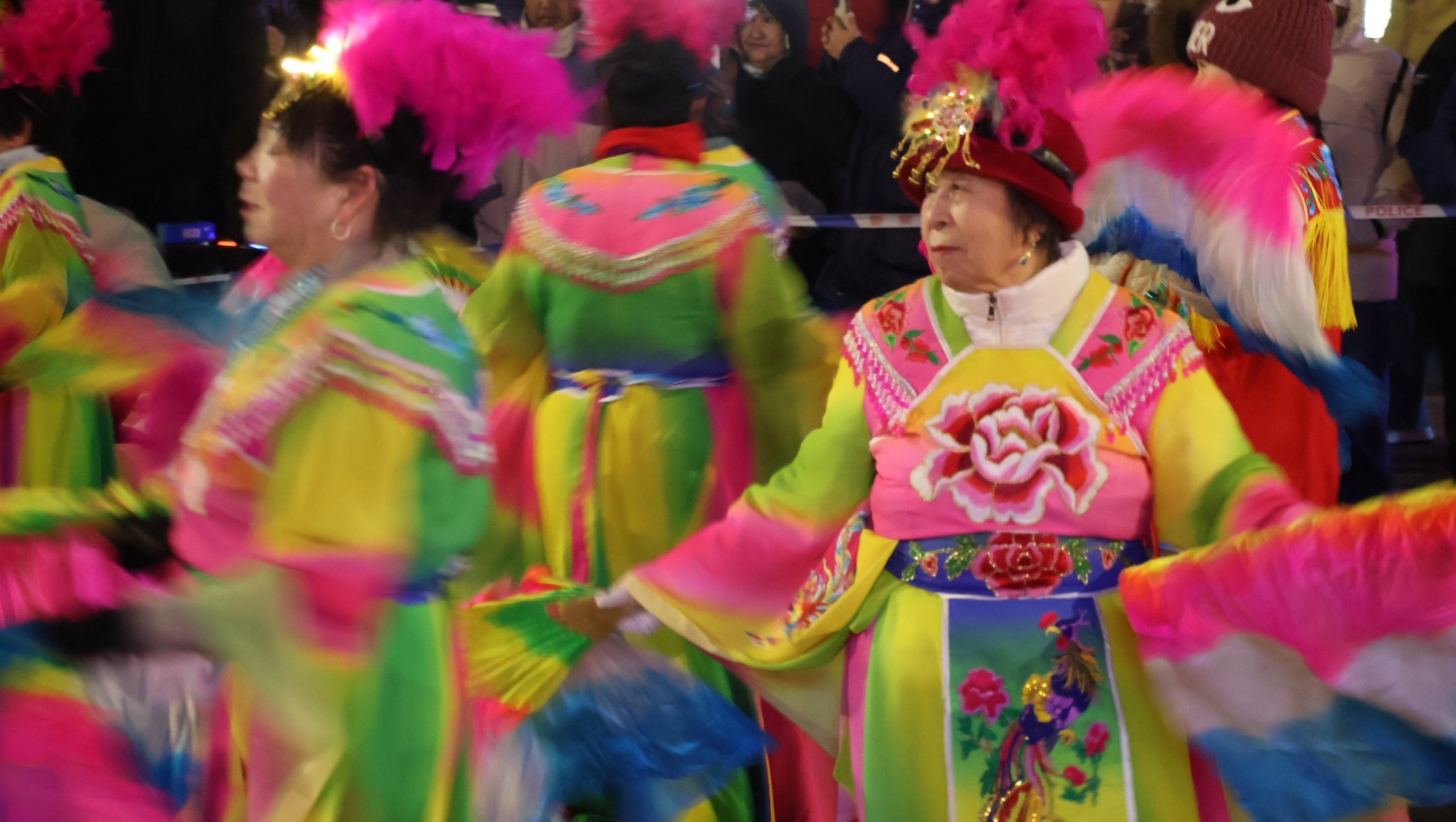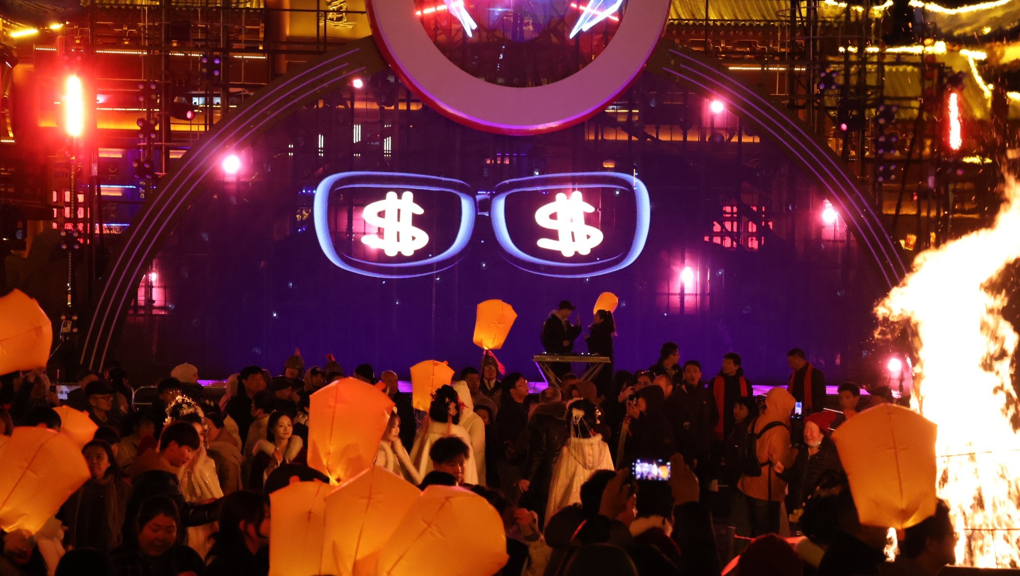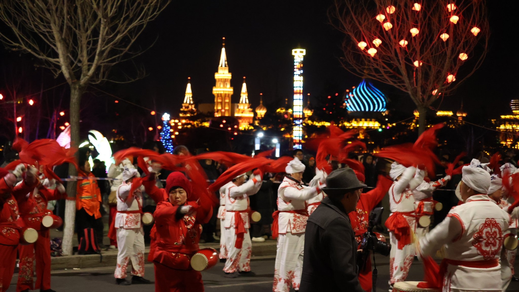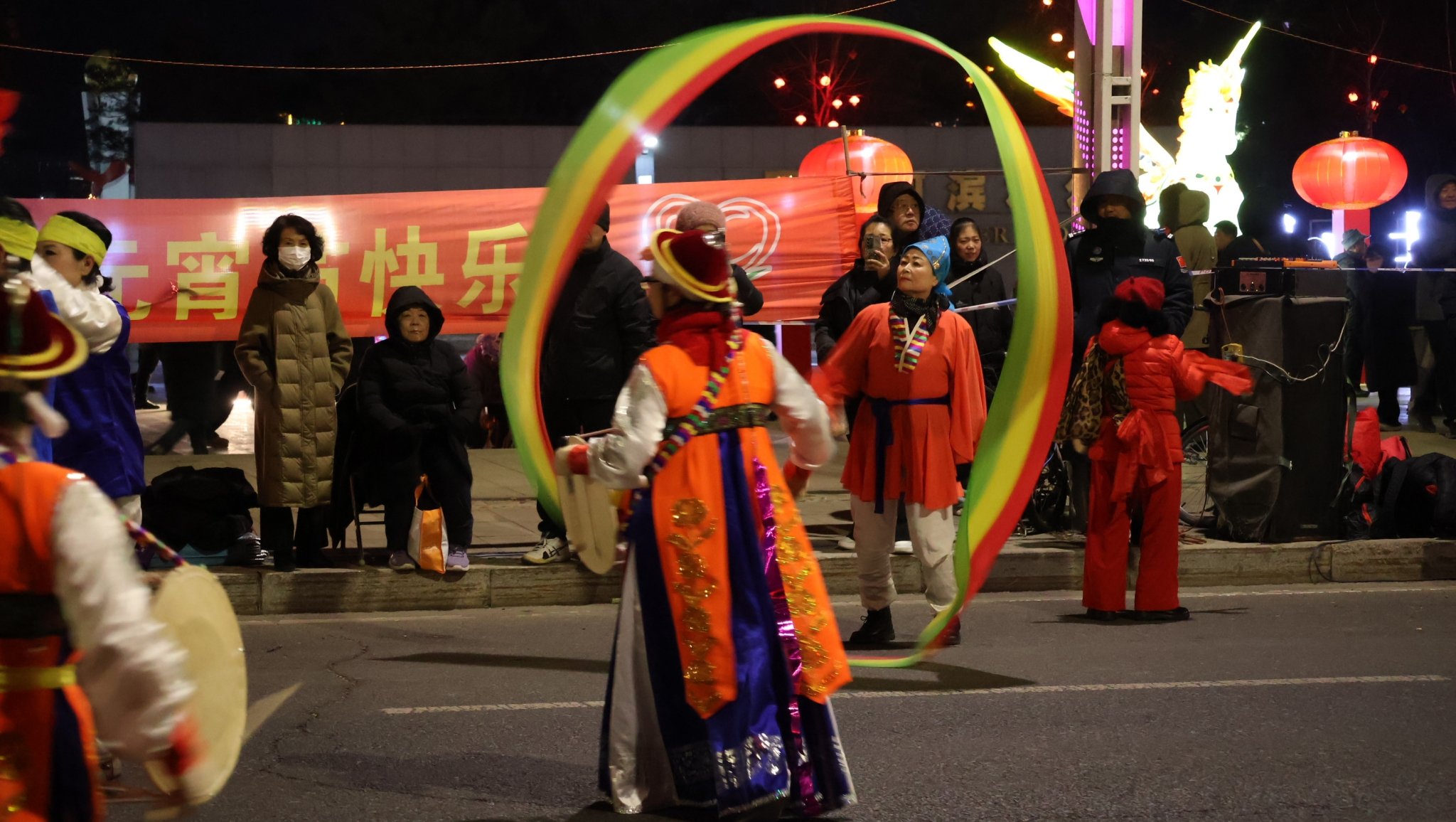 Народное гулянье развернулось на одной из улиц Хуньчуня: артисты исполняли традиционные танцы, играл духовой оркестр, по дороге "проплывал" яркий китайский дракон. Над площадью взмыли десятки дронов, которые выстраивались в фигуры в ночном небе, сменяющие друг друга под музыку.