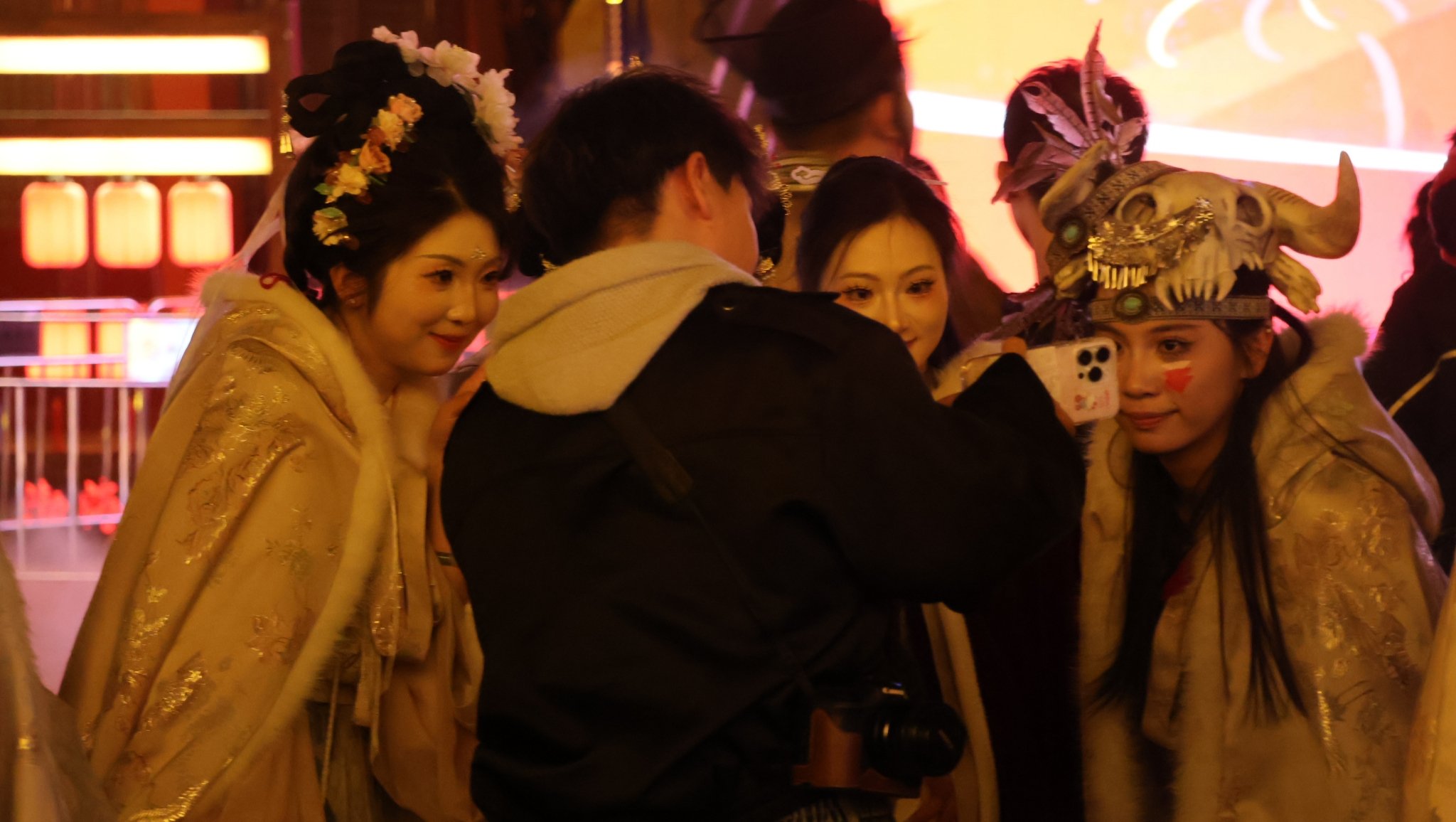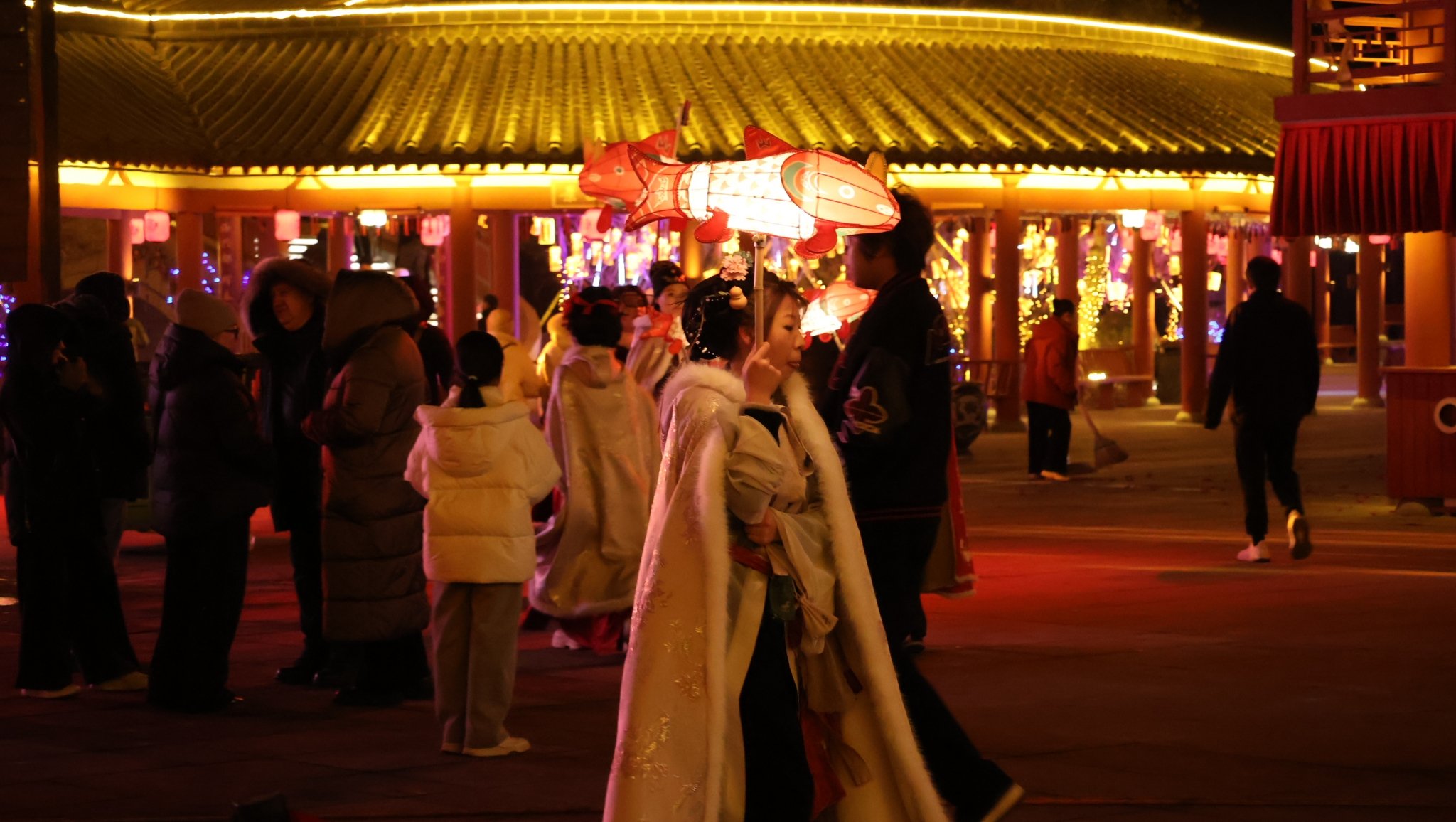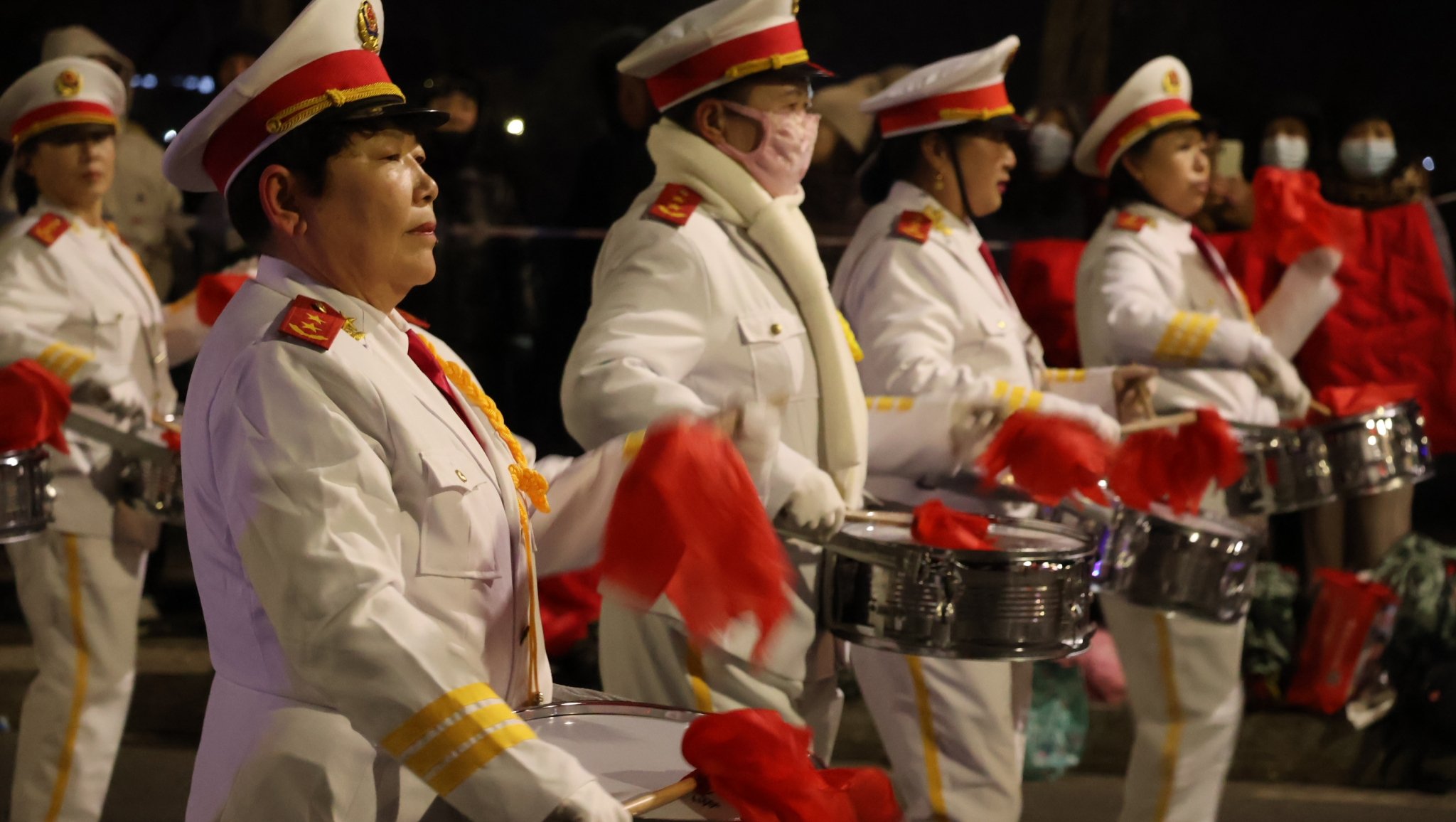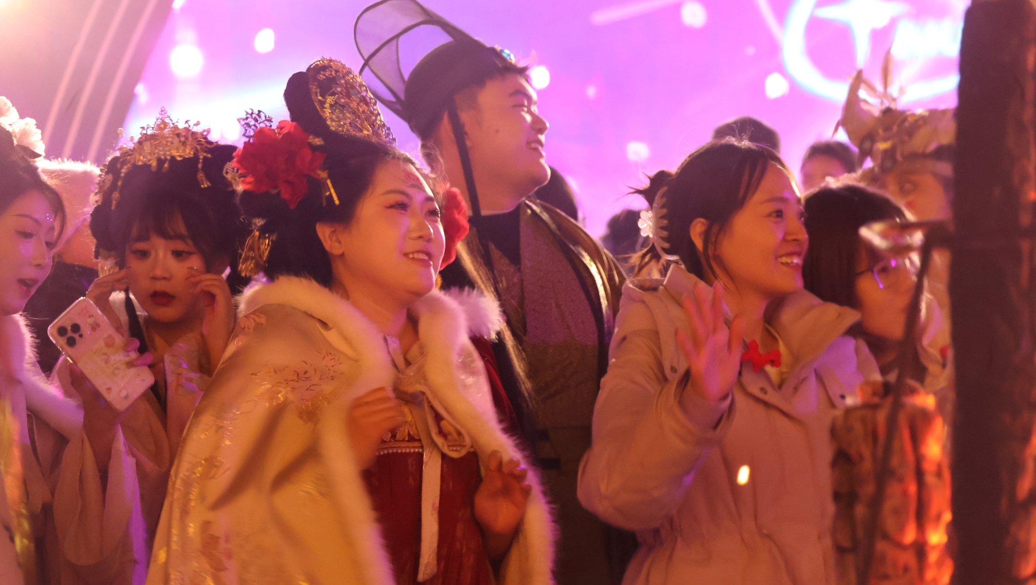 Народное гулянье развернулось на одной из улиц Хуньчуня: артисты исполняли традиционные танцы, играл духовой оркестр, по дороге "проплывал" яркий китайский дракон. Над площадью взмыли десятки дронов, которые выстраивались в фигуры в ночном небе, сменяющие друг друга под музыку.
