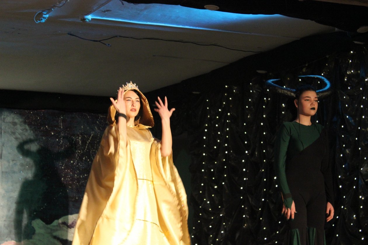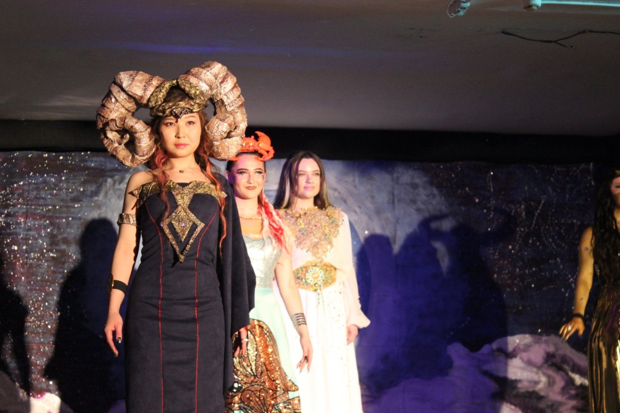 Первое, чем предстояло насладиться публике, это продуманные до мелочей наряды, по которым и не скажешь, что они сотканы "из того, что было" — из имеющихся запасов и материалов, которые удалось получить через посылки от родных. Например, массивные рога Овна сделаны из папье-маше.