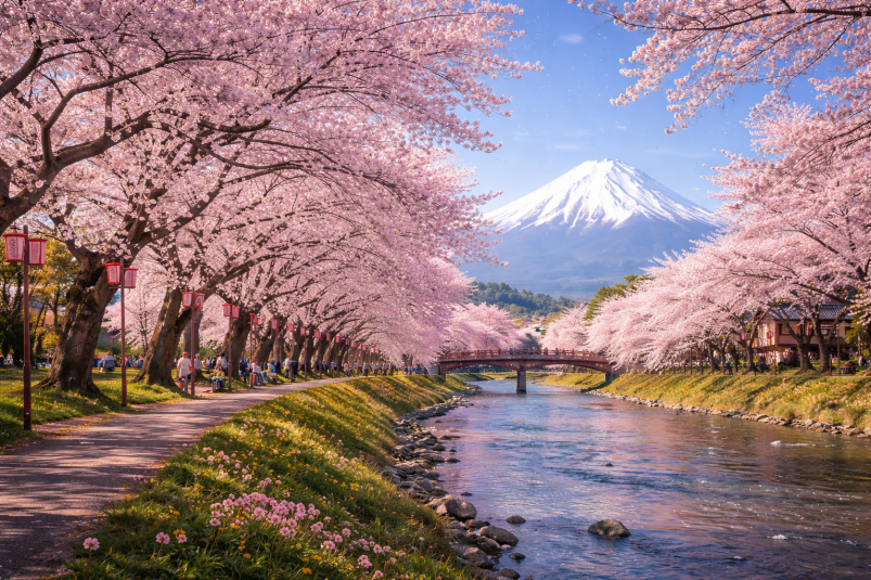 Период цветения превращает города в огромные цветущие сады. Люди проводят время на улице, устраивают пикники, гуляют по паркам и фотографируются под розовыми деревьями. Атмосфера становится праздничной и очень спокойной — будто вся страна на несколько дней замедляет ритм жизни.