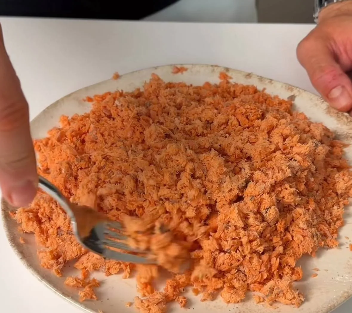 1. Начните с рыбы. Лосось промойте, добавьте специи, каплю лимонного сока и отправьте запекаться в духовку на 180 градусов до готовности. Вам понадобится 15 минут. Вытащите готовое блюдо и разберите на волокна, предварительно убрав косточки и кожу.