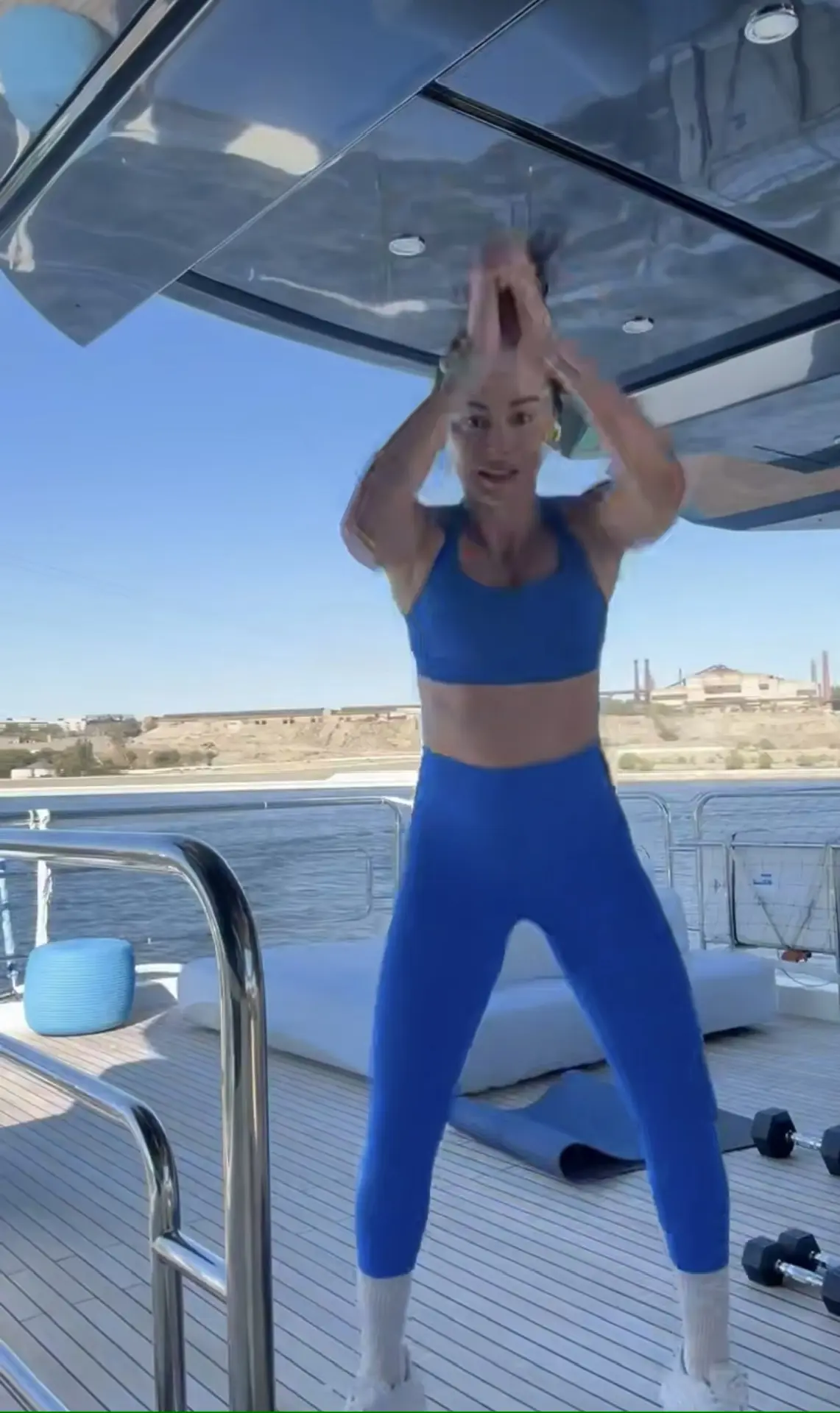 "Начинаю утро со стакана воды и тренировки, а уже потом приступаю ко всем делам. Кто-то в это время ленится и откладывает на потом, но, поверьте, спорт — это лучший способ включить себя в день", — написала знаменитость в телеграм-канале (18+).