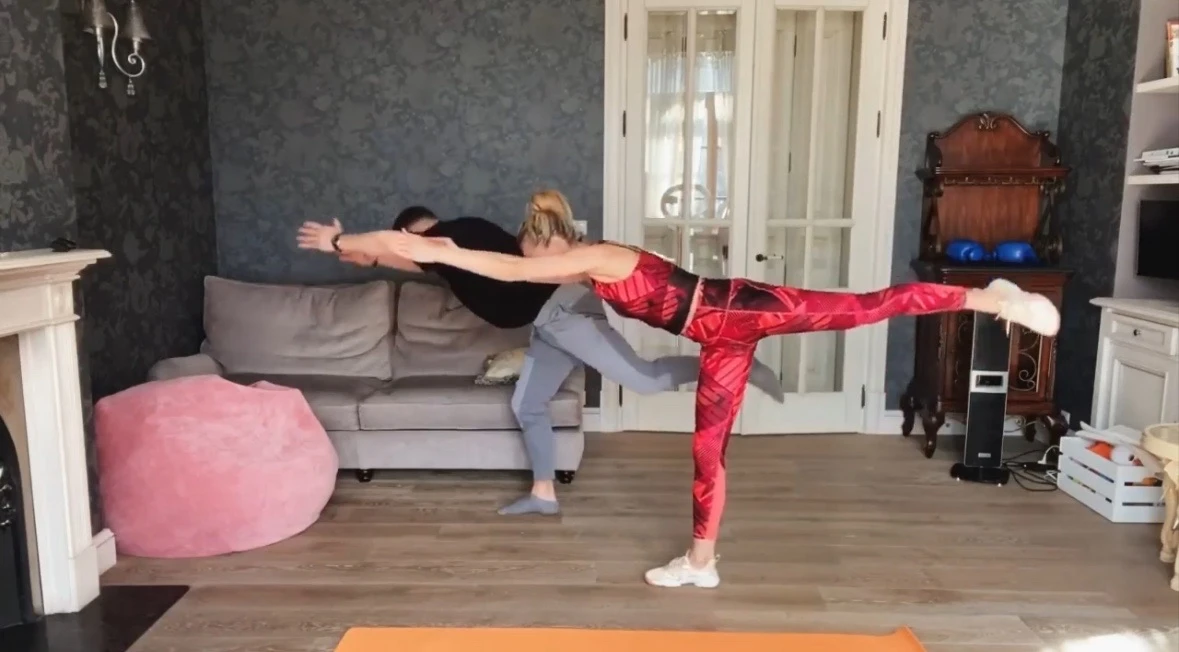 Встаньте на правую ногу, левую согните перед собой, руки на уровне плеч. Наклоните корпус вперёд, одновременно отводя левую ногу назад до уровня таза. То же самое упражнение повторите с другой, уже правой ногой.