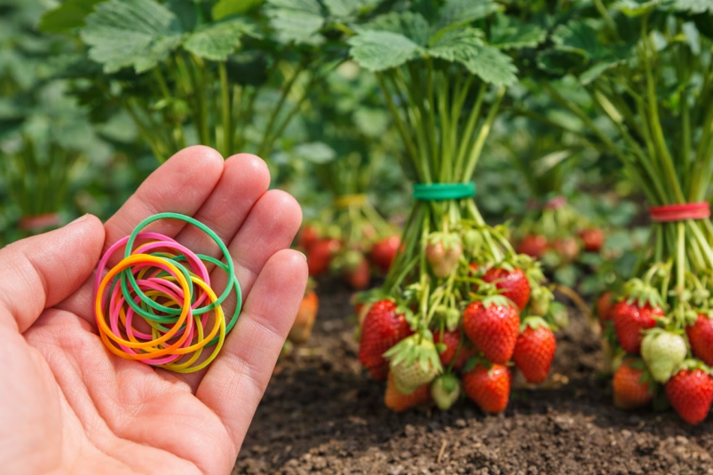 Когда клубничные кусты начинают активно плодоносить, ягоды часто опускаются на землю, где они могут запачкаться, стать мишенью для насекомых или начать гнить из-за постоянной влажности. Чтобы избежать этих проблем, садоводы используют очень простой, но эффективный метод подвязки клубники с помощью канцелярских резинок.