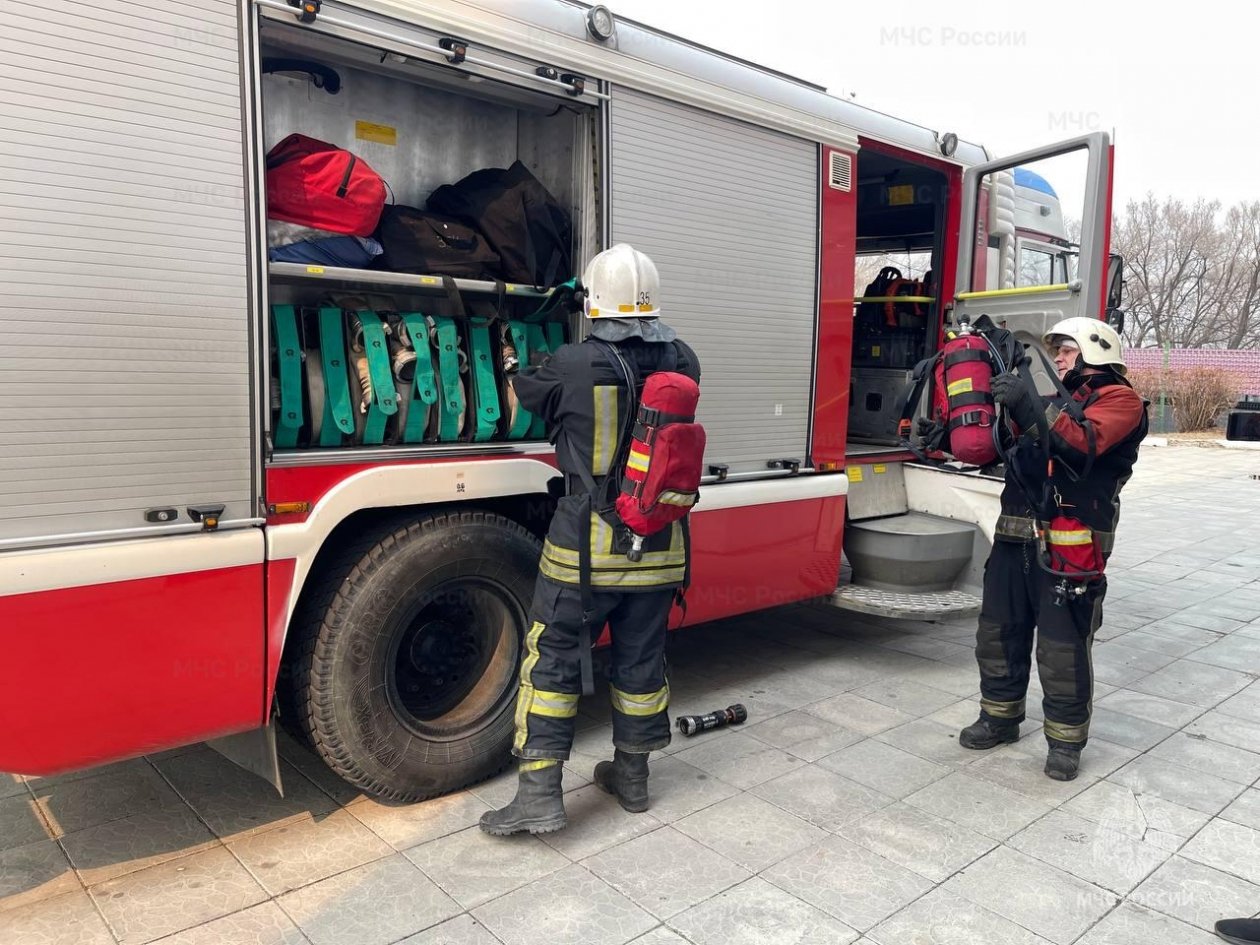 "Согласно легенде, возгорание произошло в помещении библиотеки. После проведения эвакуации учащихся и педагогического состава было установлено, что в здании остаются два человека. В ходе разведки звено газодымозащитной службы обнаружило условно пострадавших и вывело их в безопасное место с применением спасательных устройств", — говорится в сообщении.