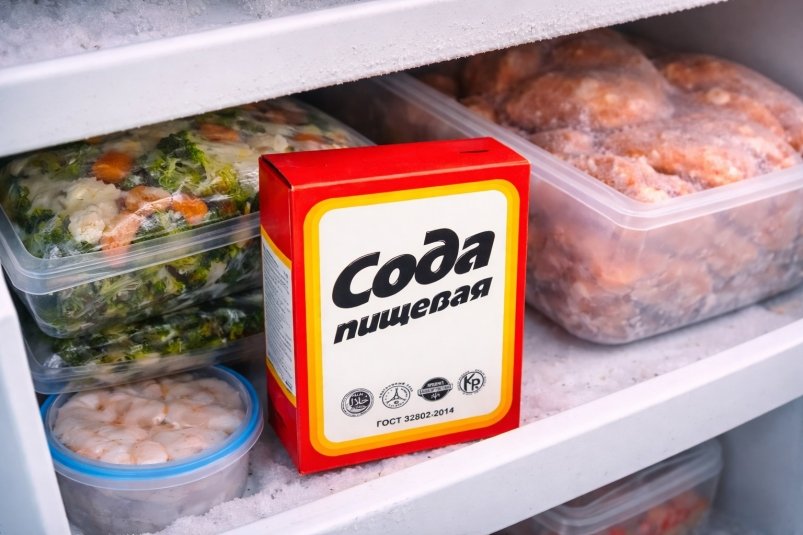 2. Ещё одно полезное свойство — снижение влажности. Избыточная влага в морозильнике приводит к образованию льда и наледи. Это ухудшает качество хранения продуктов и усложняет уход за техникой. Сода частично впитывает лишнюю влагу, благодаря чему уменьшается образование кристаллов льда.