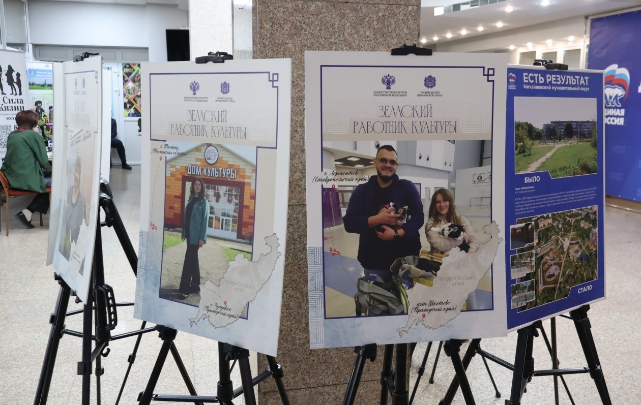 Параллельно с дискуссиями в фойе ДК "Дружба" развернулась обширная экспозиция (6+), демонстрирующая достижения муниципалитетов. Были представлены фотоотчеты "Было/стало" (6+), иллюстрирующие реализованные проекты, фотопроект "Земский работник культуры" (6+) и краеведческая литература, выпущенная в рамках губернаторской издательской программы.